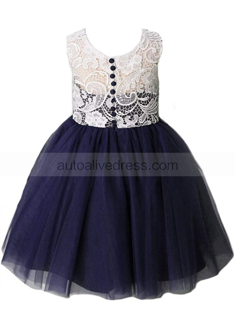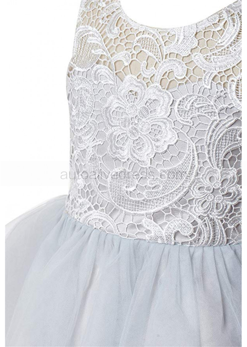 Ivory Lace Gray Tulle Knee Length Flower Girl Dress