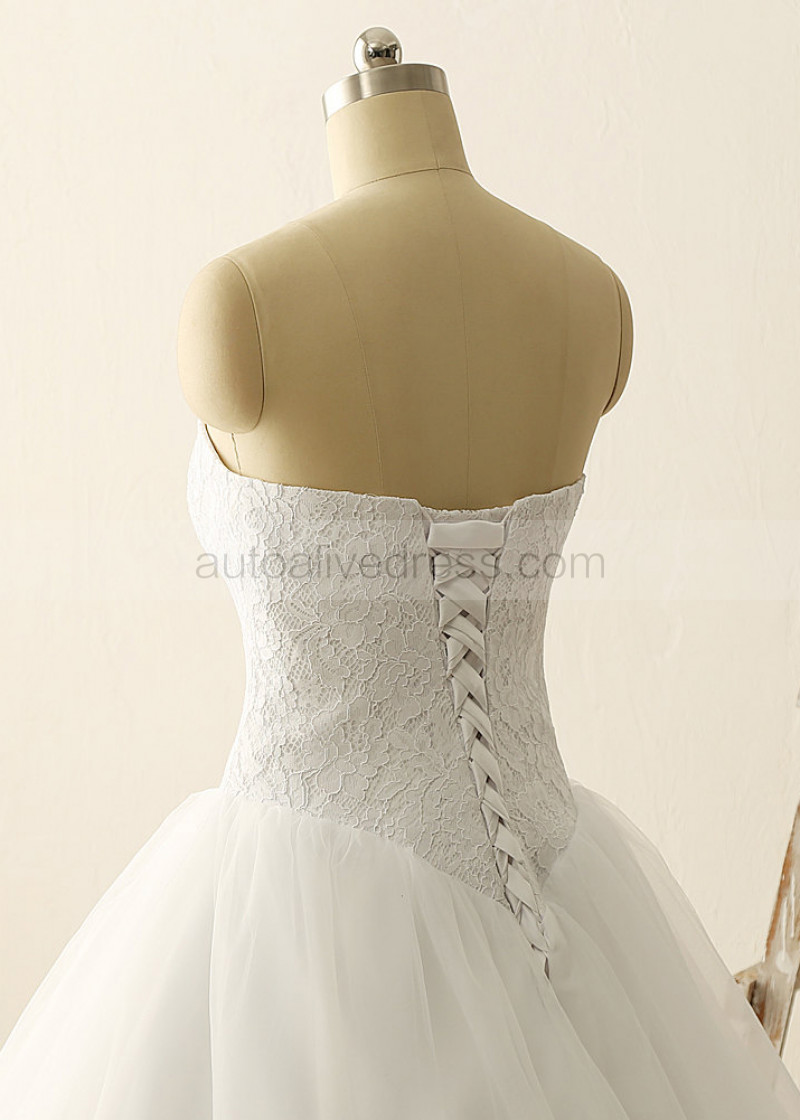 Ivory Lace Tulle Strapless Corset Back Long Wedding Dress