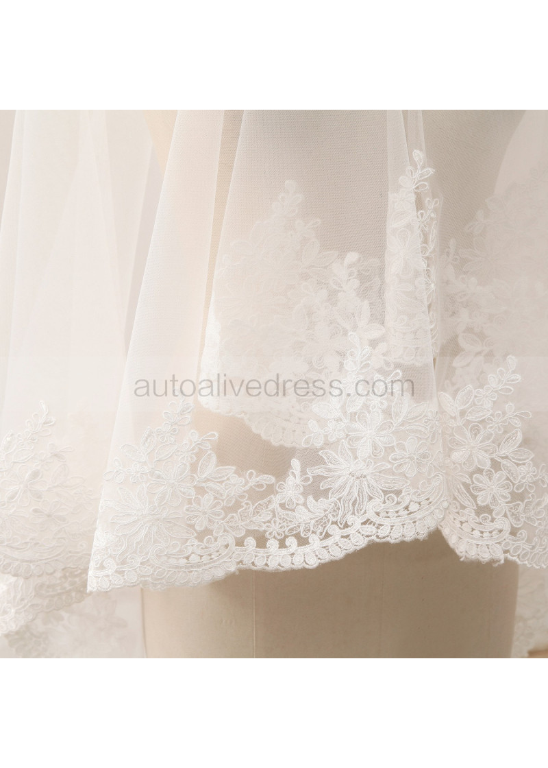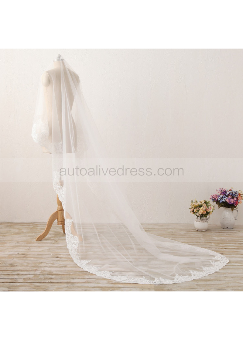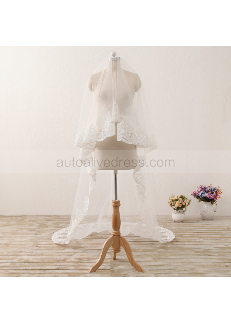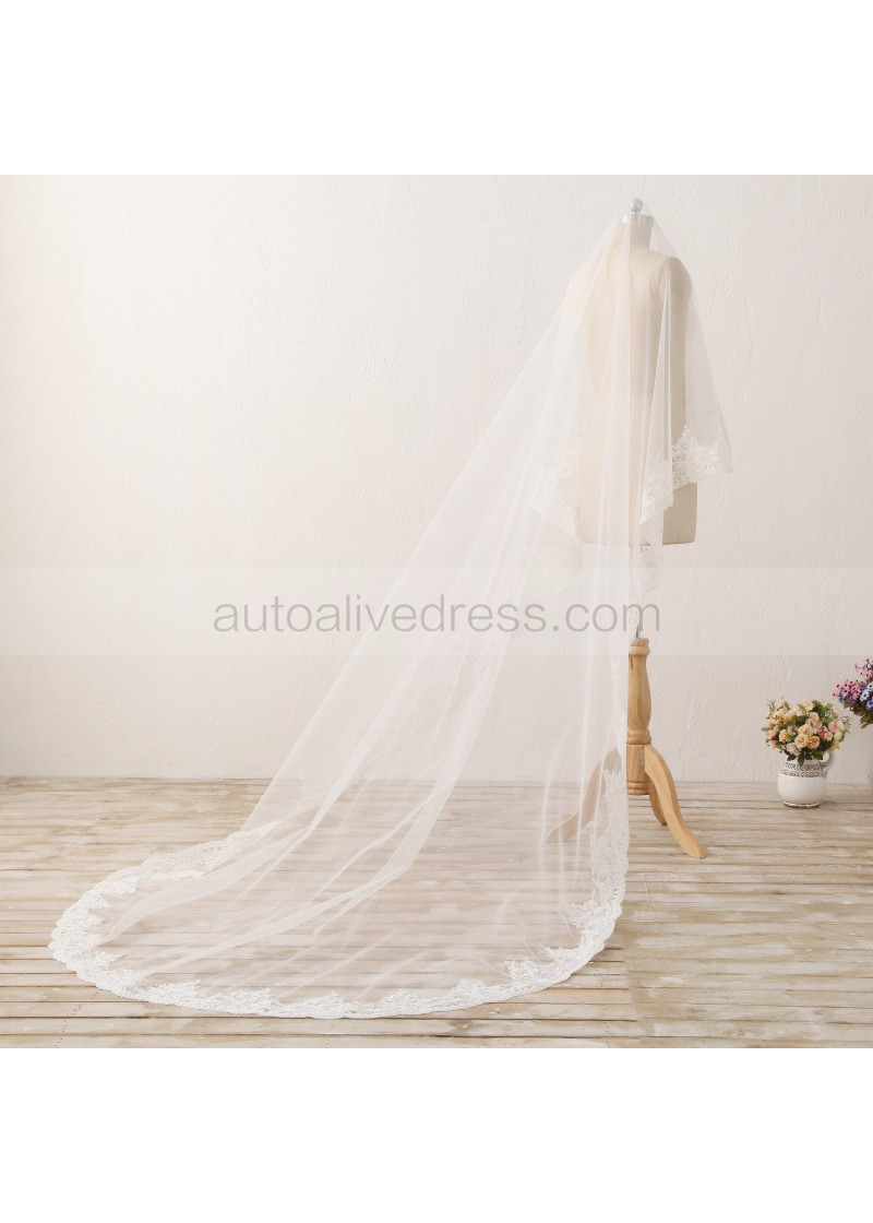Ivory Lace Edge Cathedral Wedding Veil Classic Bridal Veil