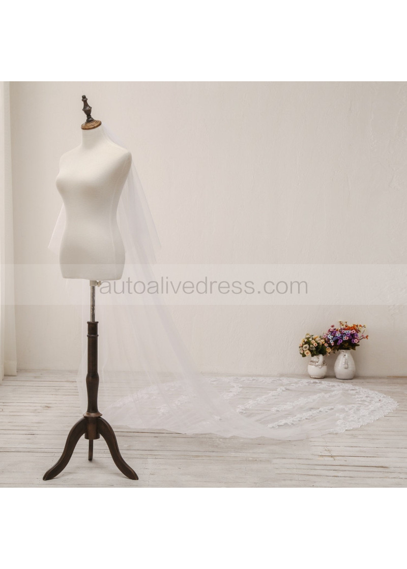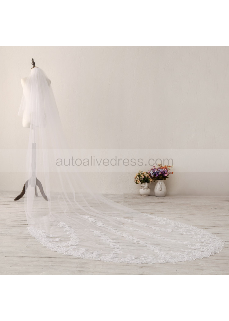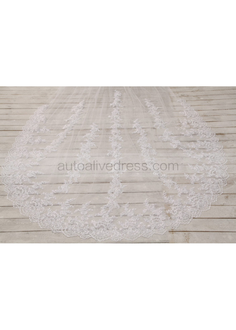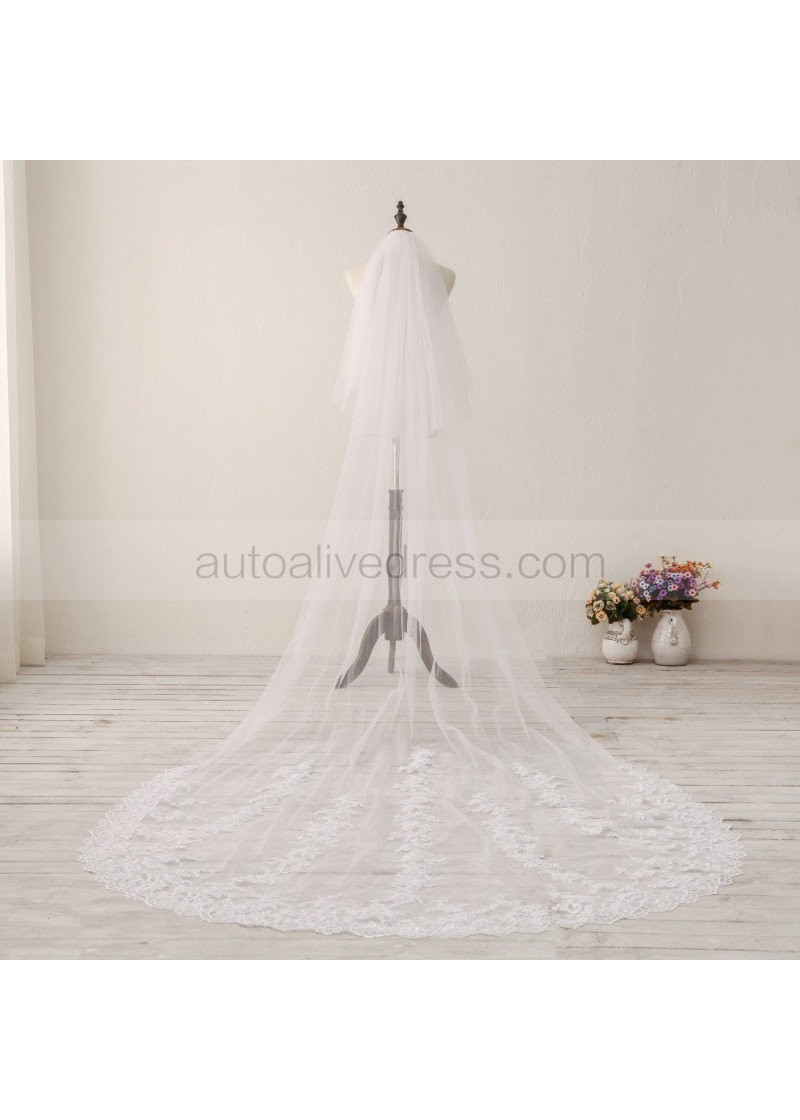 Ivory Two Tier Lace Cathedral Wedding Veil Bridal Veil