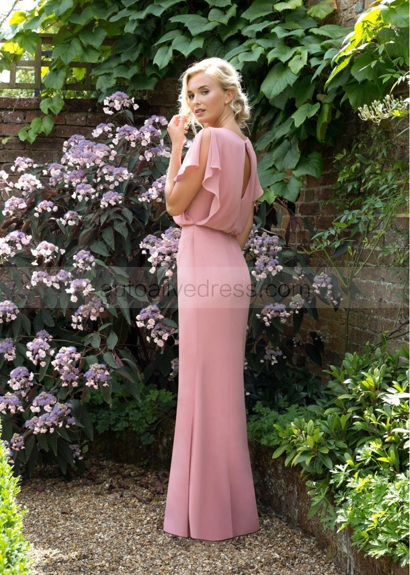 Boho Dusky Pink Chiffon Keyhole Back Bridesmaid Dress