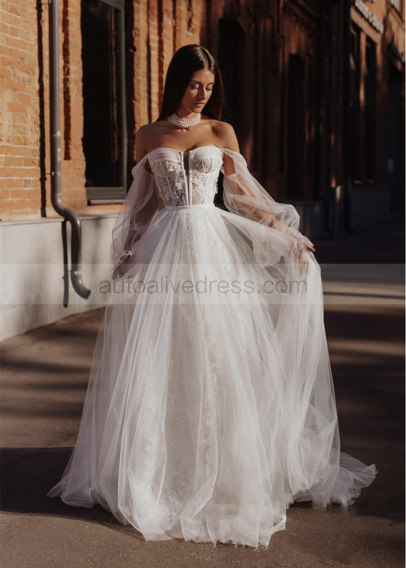 2-in-1 Wedding Dress With Detachable Tulle Skirt