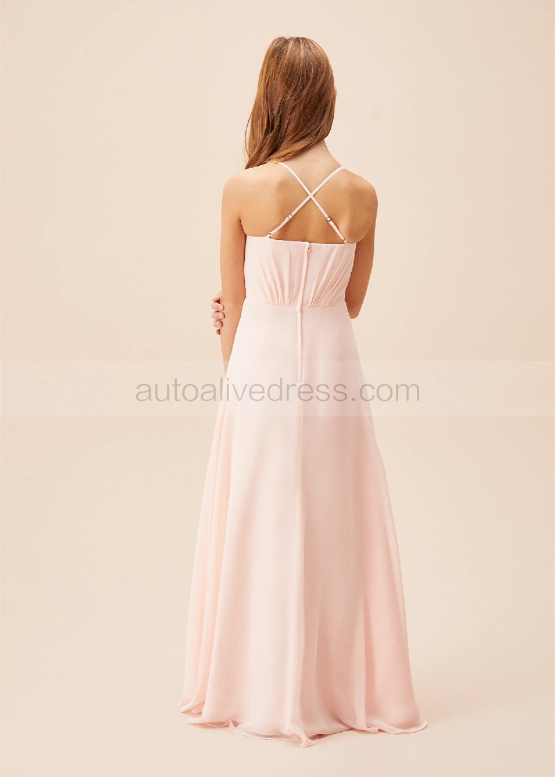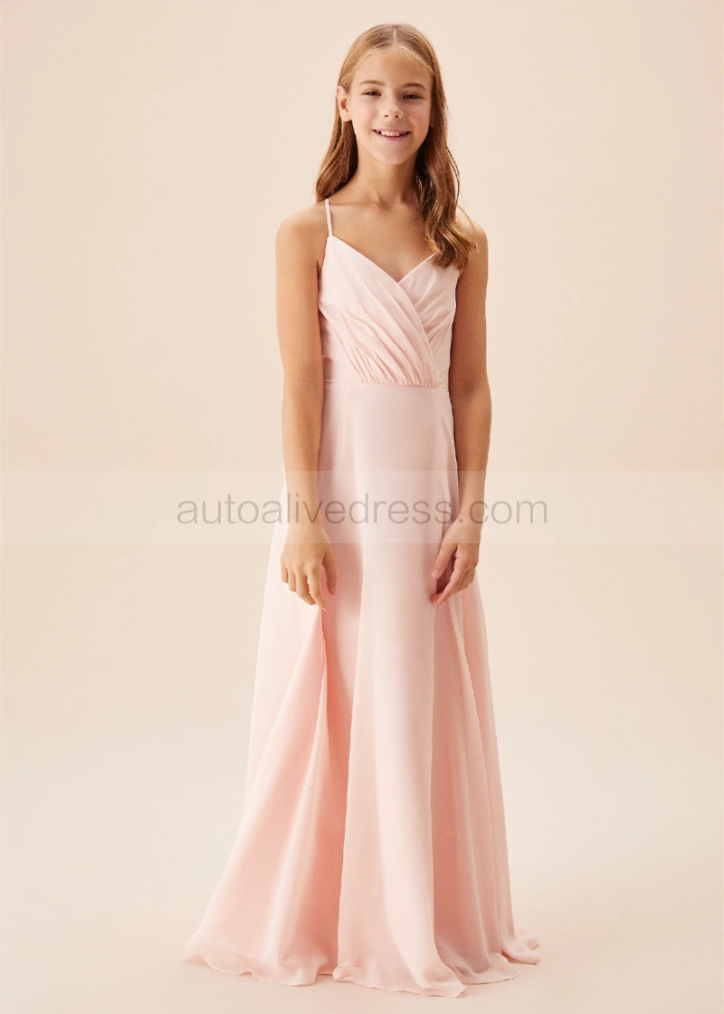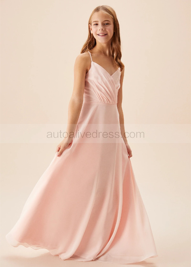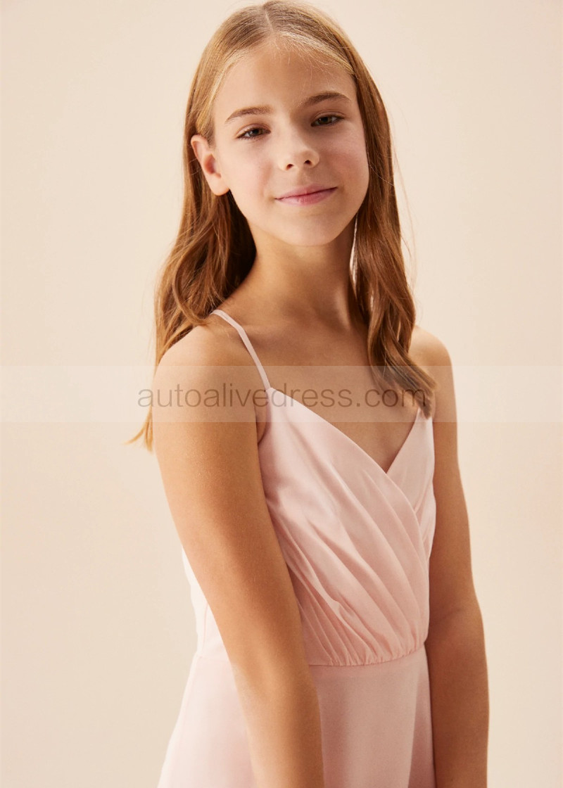 Adjustable Spaghetti Straps Petal Ruched Chiffon Junior Bridesmaid Dress