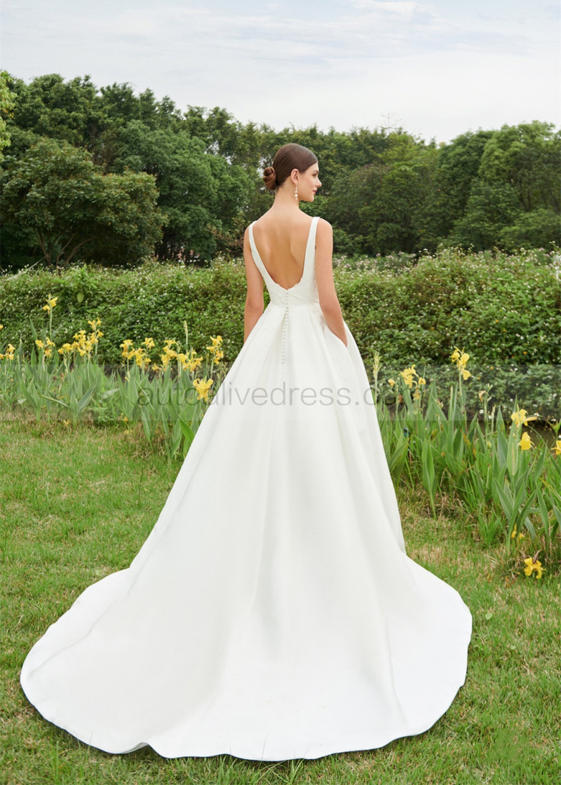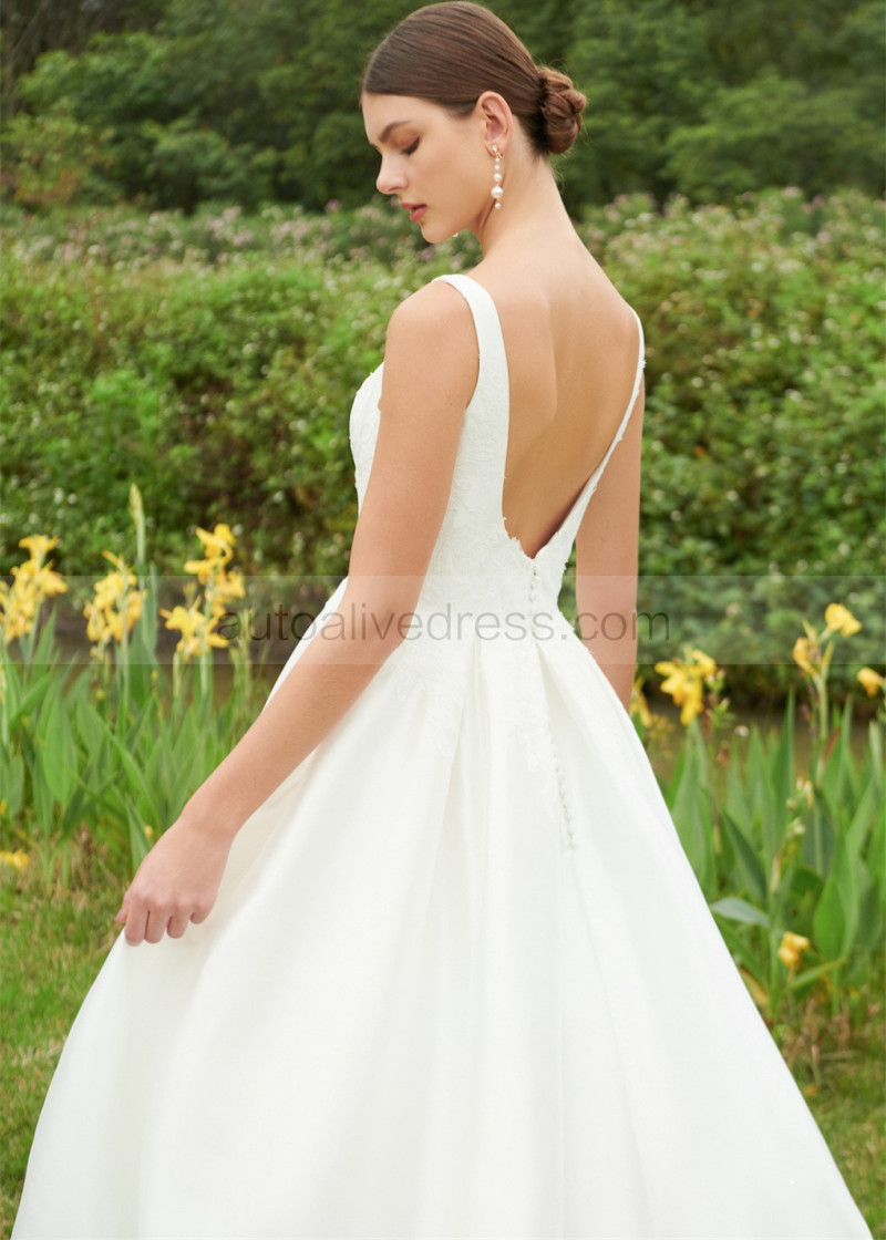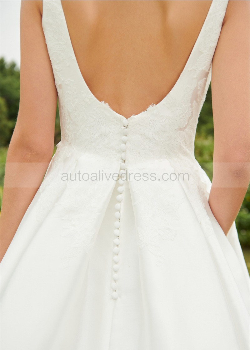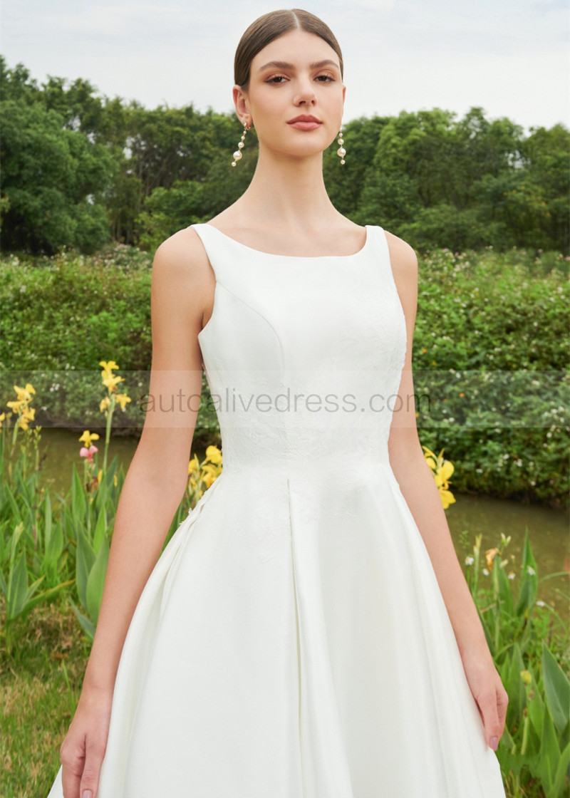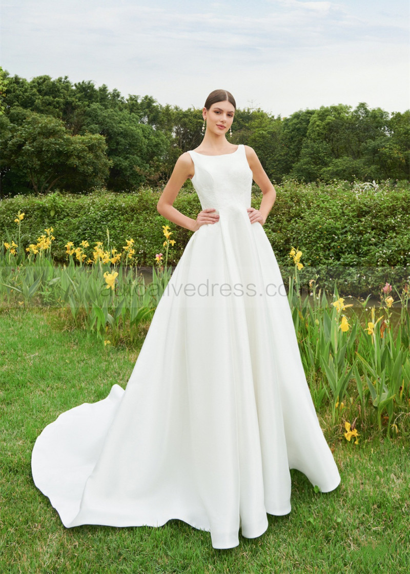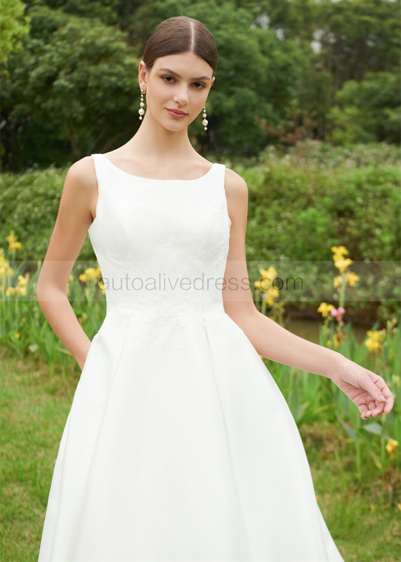 Bateau Neck Ivory Satin Lace Simple Wedding Dress