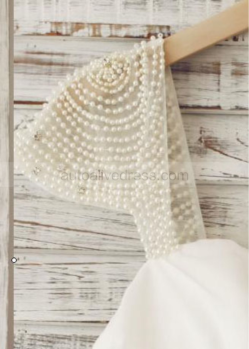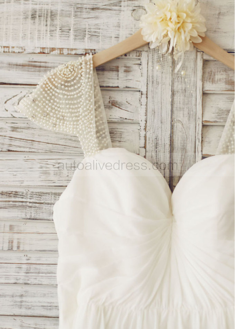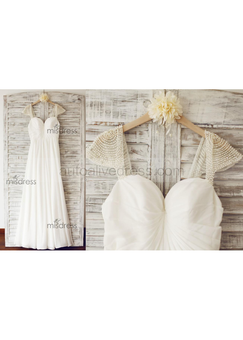 Beaded Cap Sleeves Ivory Chiffon Pleated Simple Wedding Dress