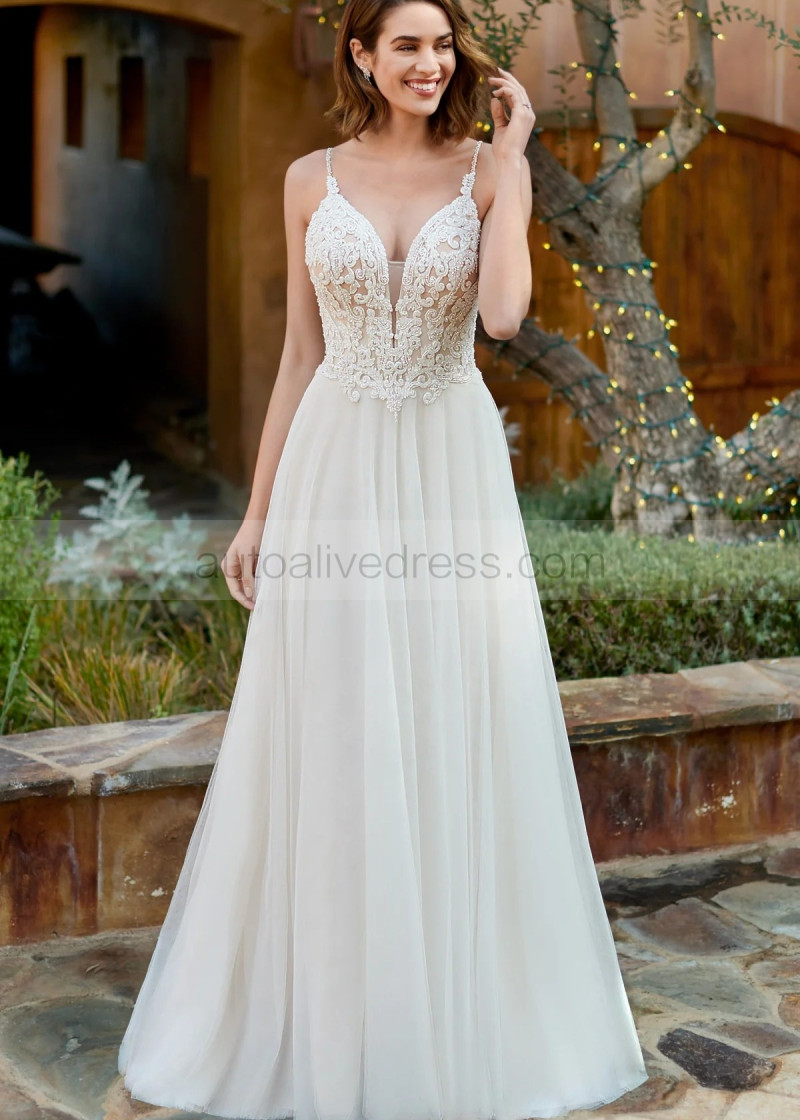 Beaded Ivory Embroidered Lace Tulle Effortlessly Beautiful Wedding Dress