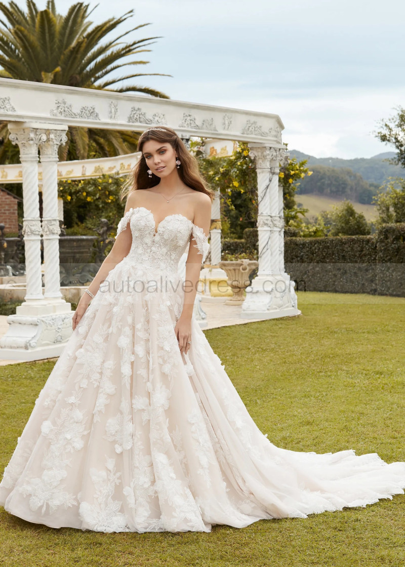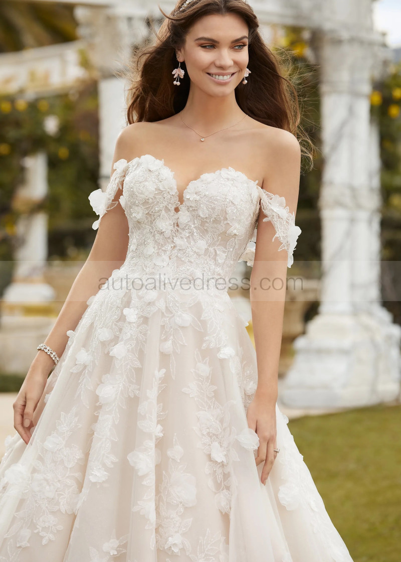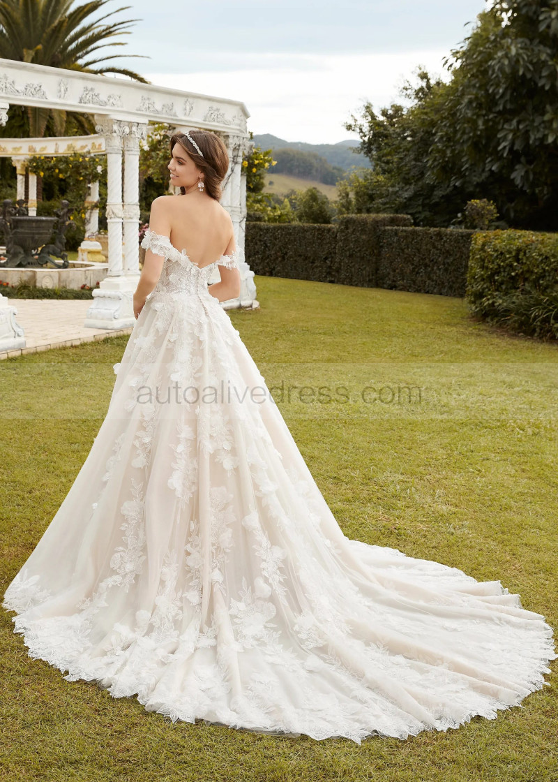 Beaded Ivory Lace Tulle Fairytale Wedding Dress With Detachable Straps