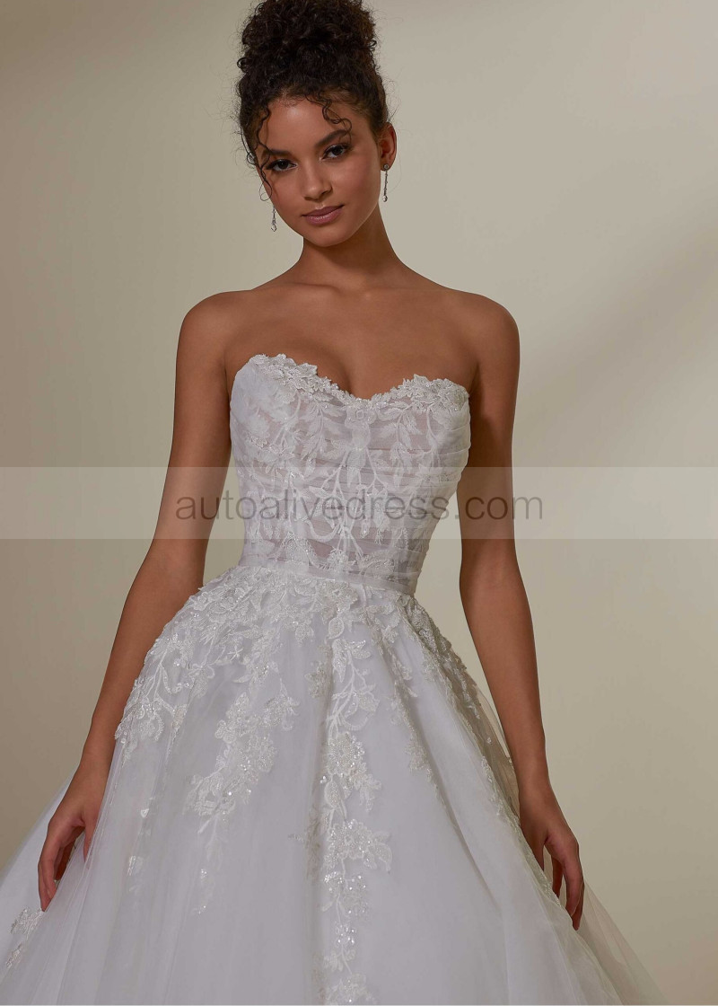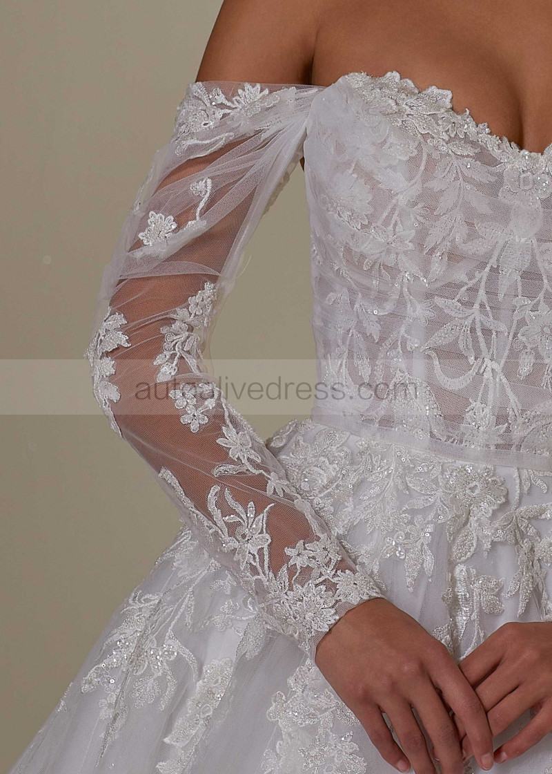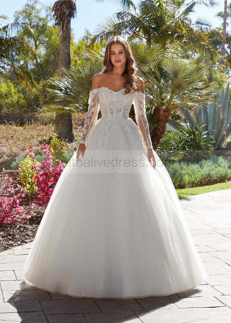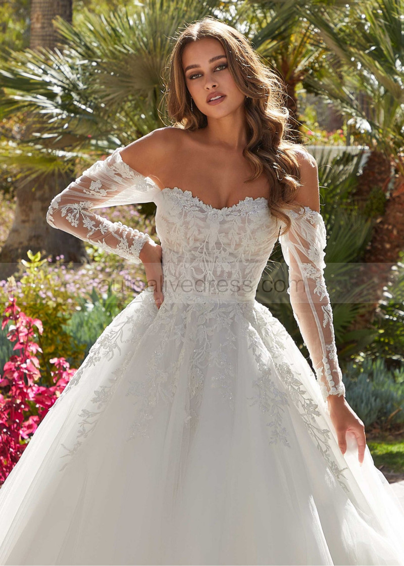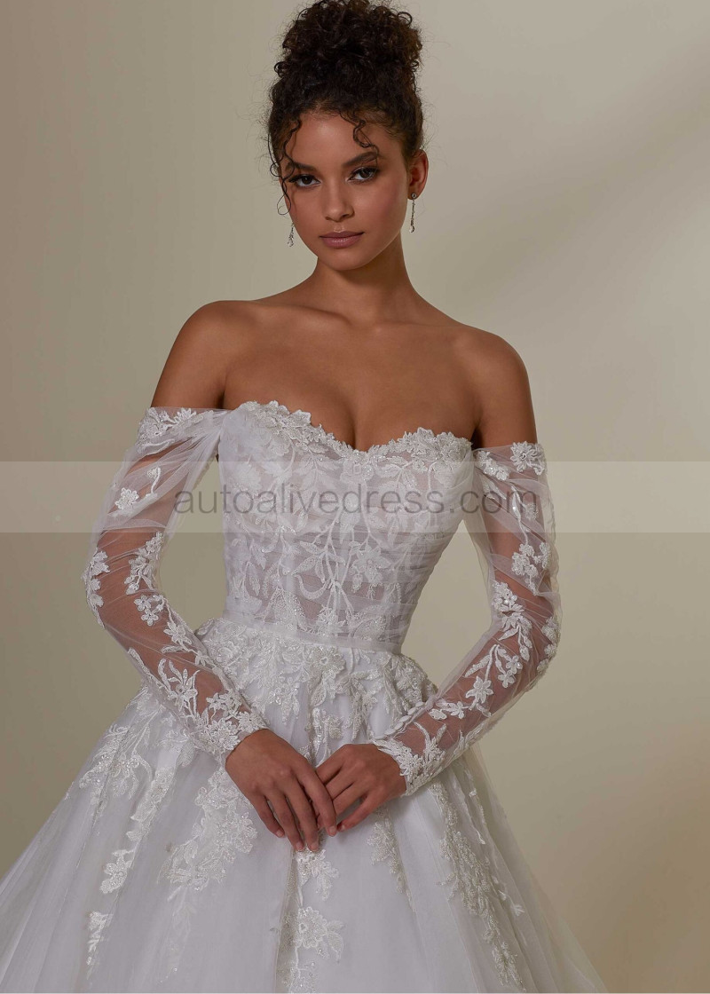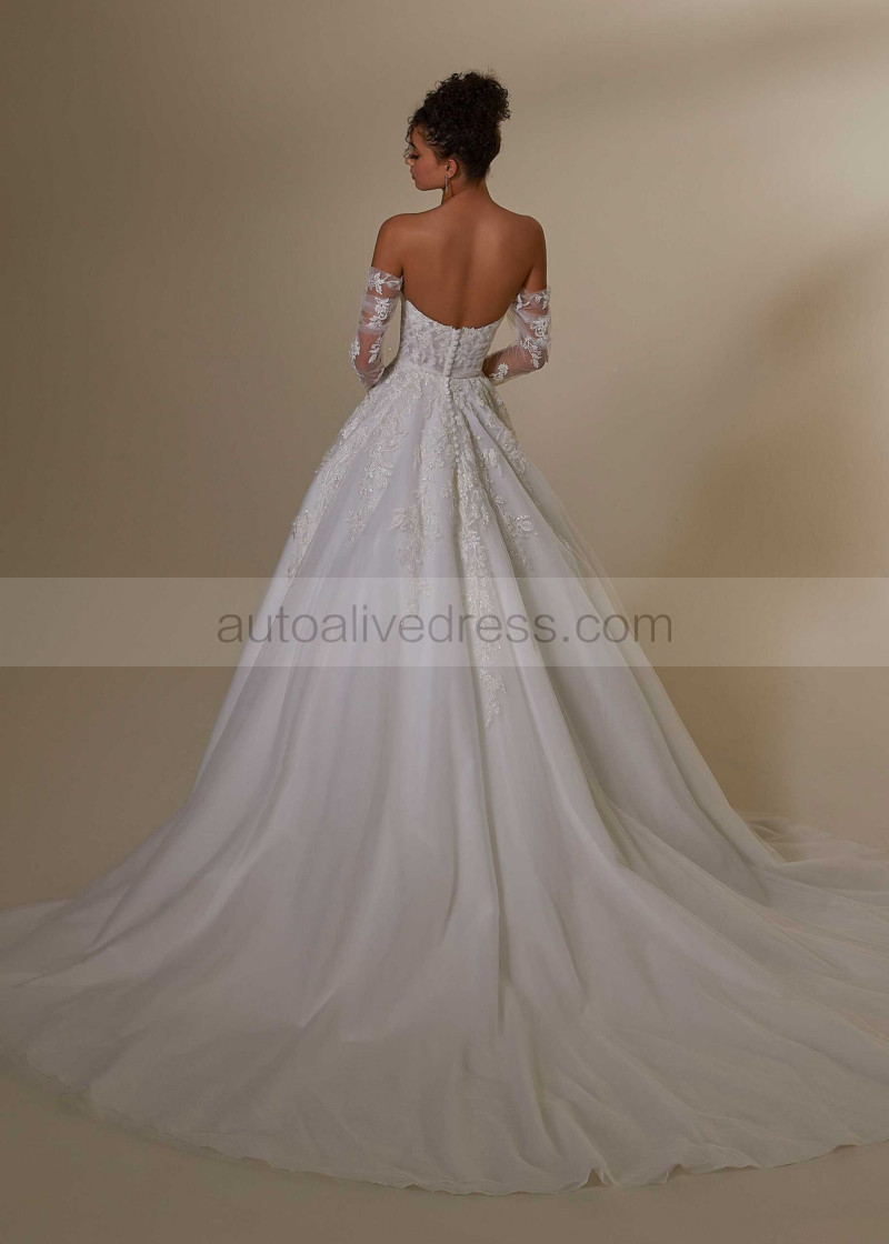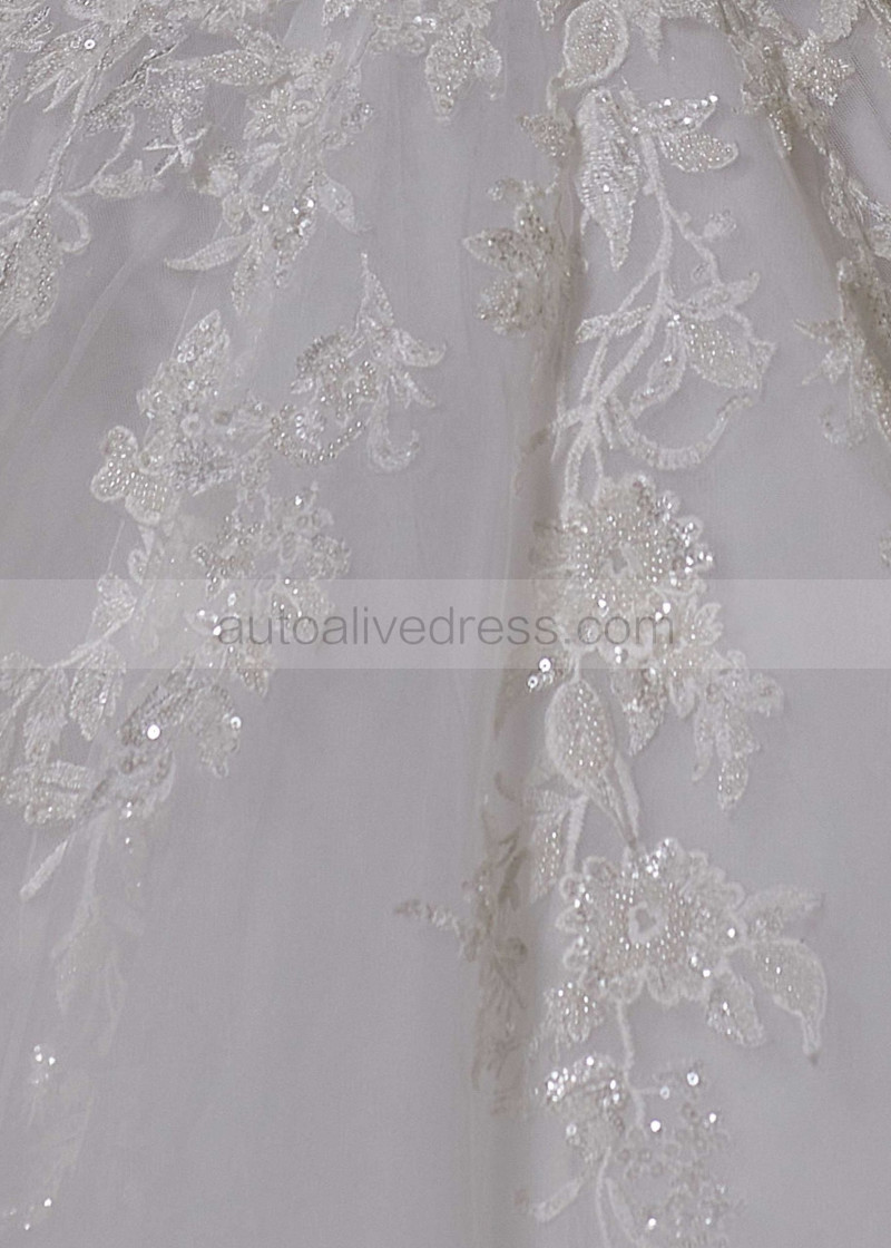 Beaded Ivory Lace Tulle Glamorous Wedding Dress With Detachable Sleeves