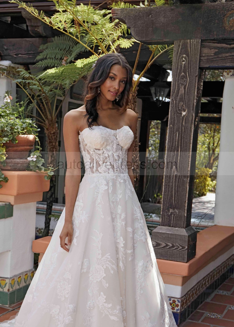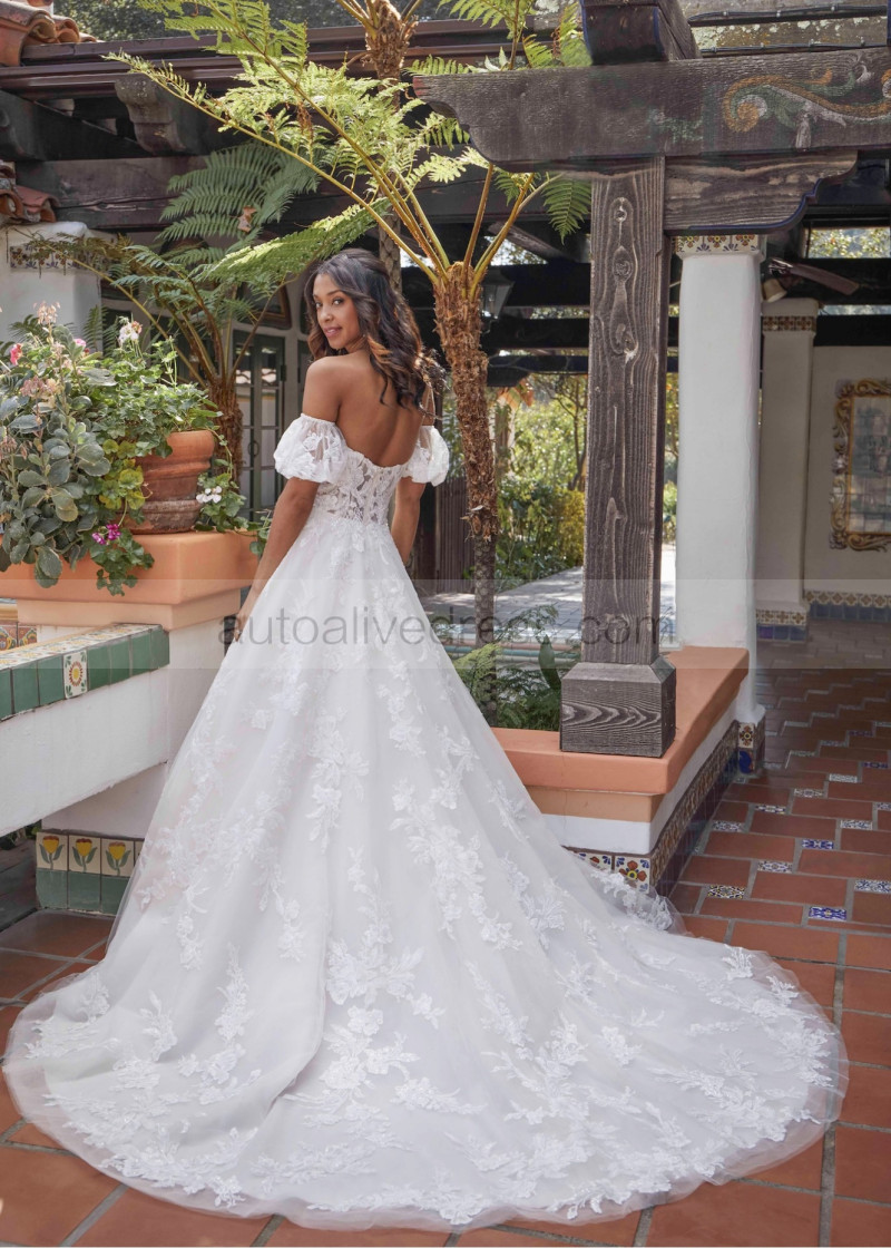 Beaded Ivory Lace Tulle Graceful Wedding Dress With Detachable Sleeves