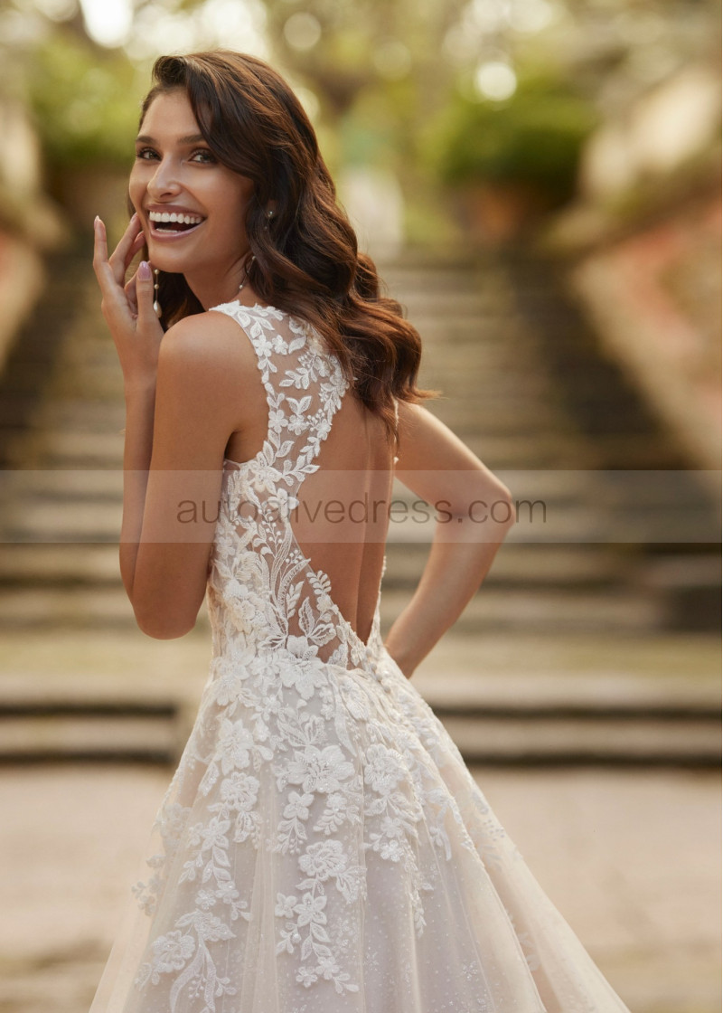 Beaded Ivory Lace Tulle Keyhole Back Glitter Wedding Dress