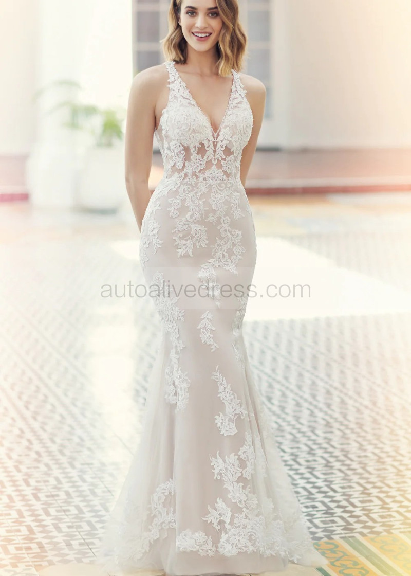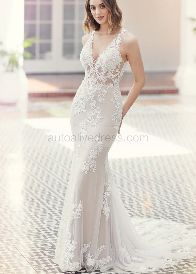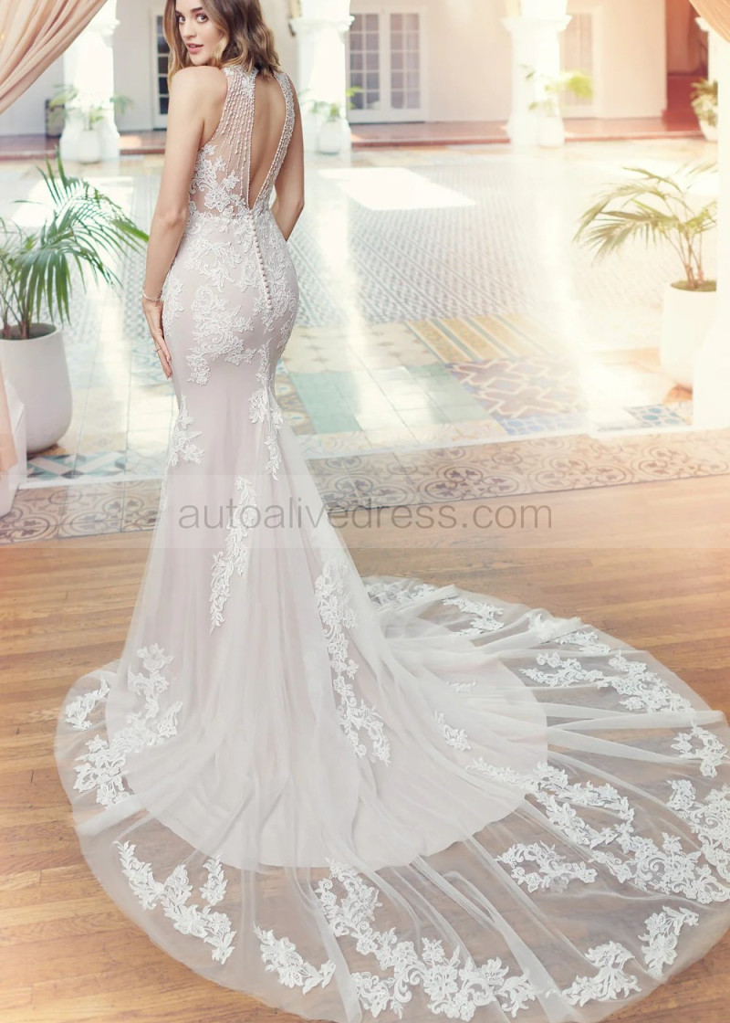 Beaded Ivory Lace Tulle Keyhole Back Luxury Wedding Dress