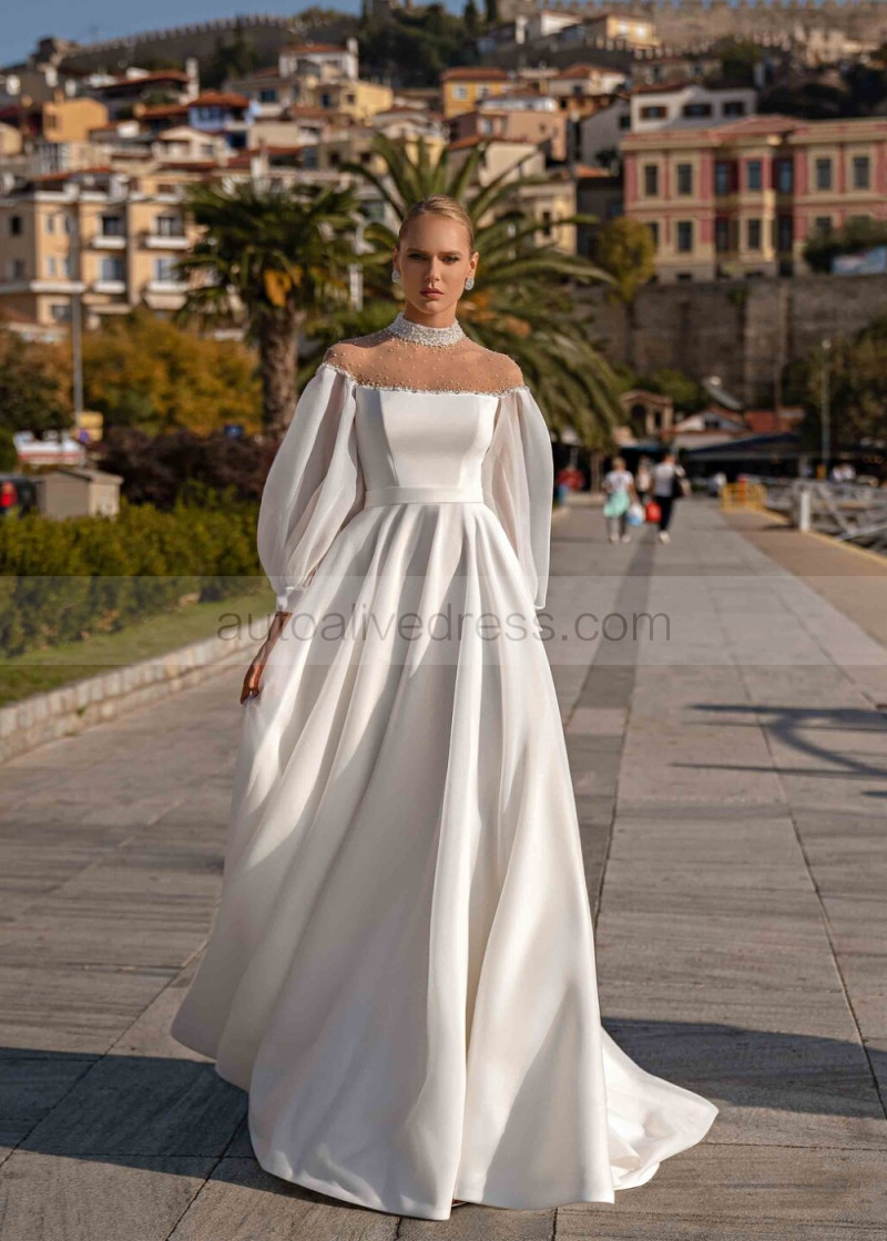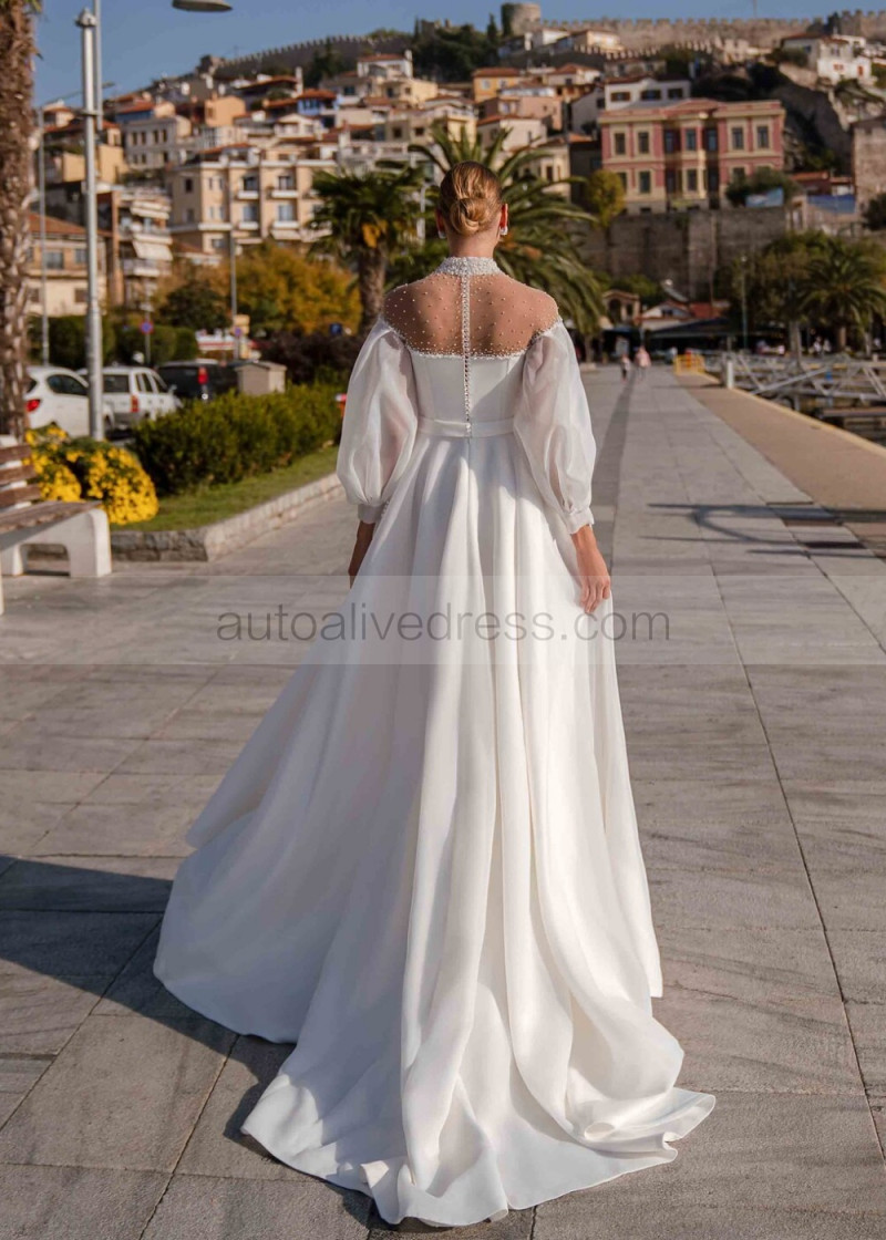 Beaded Ivory Satin Organza Stunning Wedding Dress