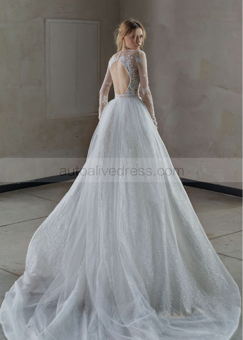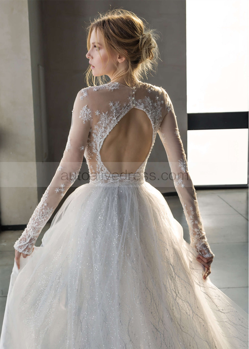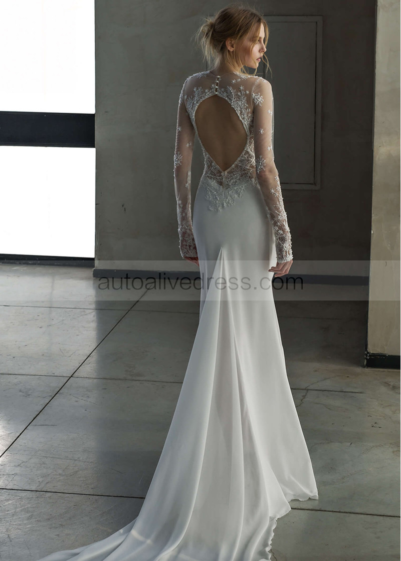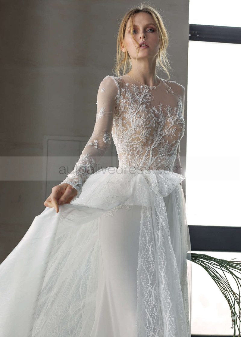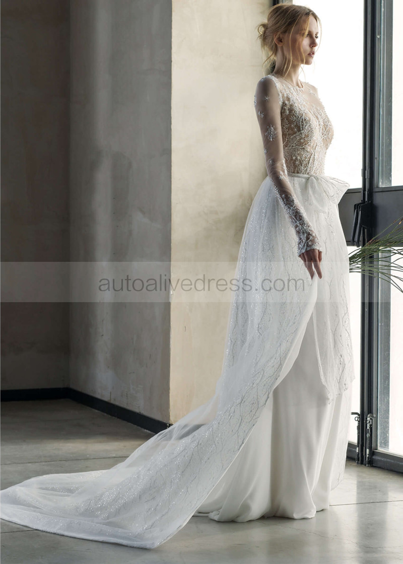Beaded Lace Chiffon Wedding Dress With Removable Train