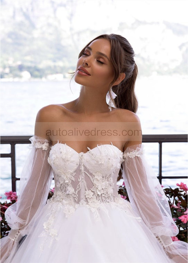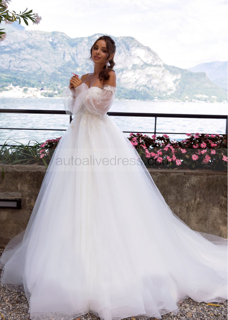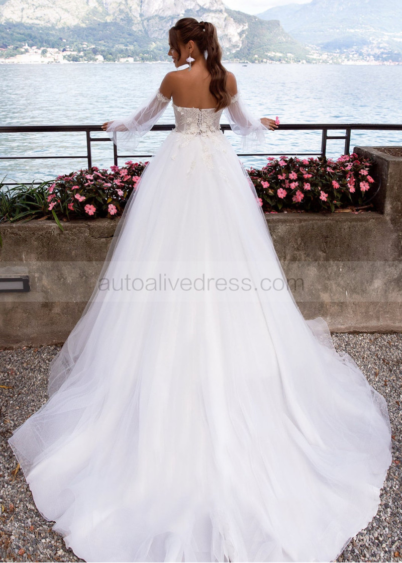 Beaded Lace Tulle Wedding Dress With Detachable Sleeves