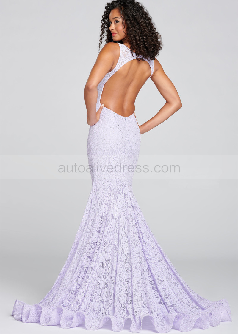Beaded Lilac Lace Keyhole Back Prom Dress