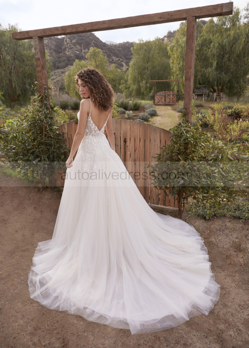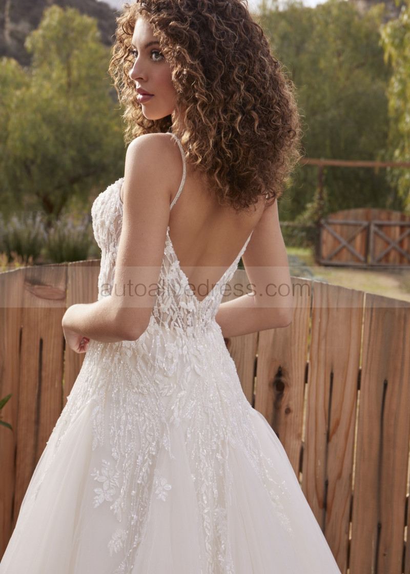 Beaded Spaghetti Straps Ivory Lace Tulle Dreamy Wedding Dress