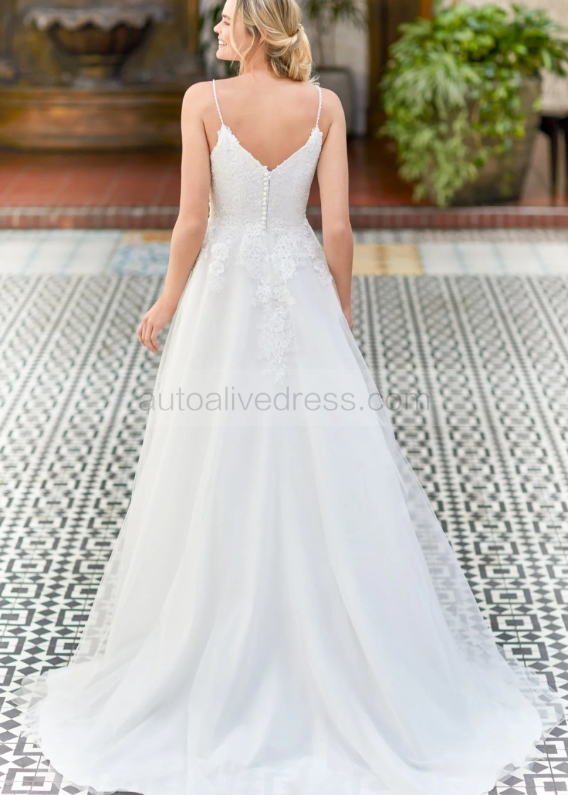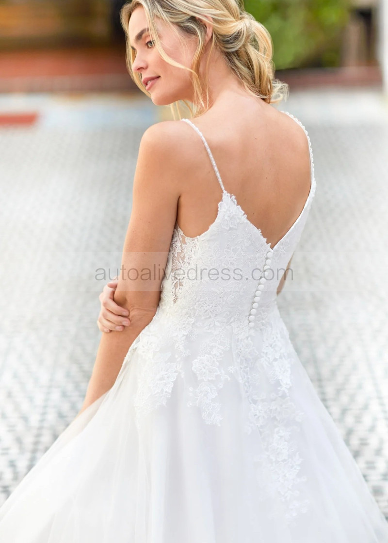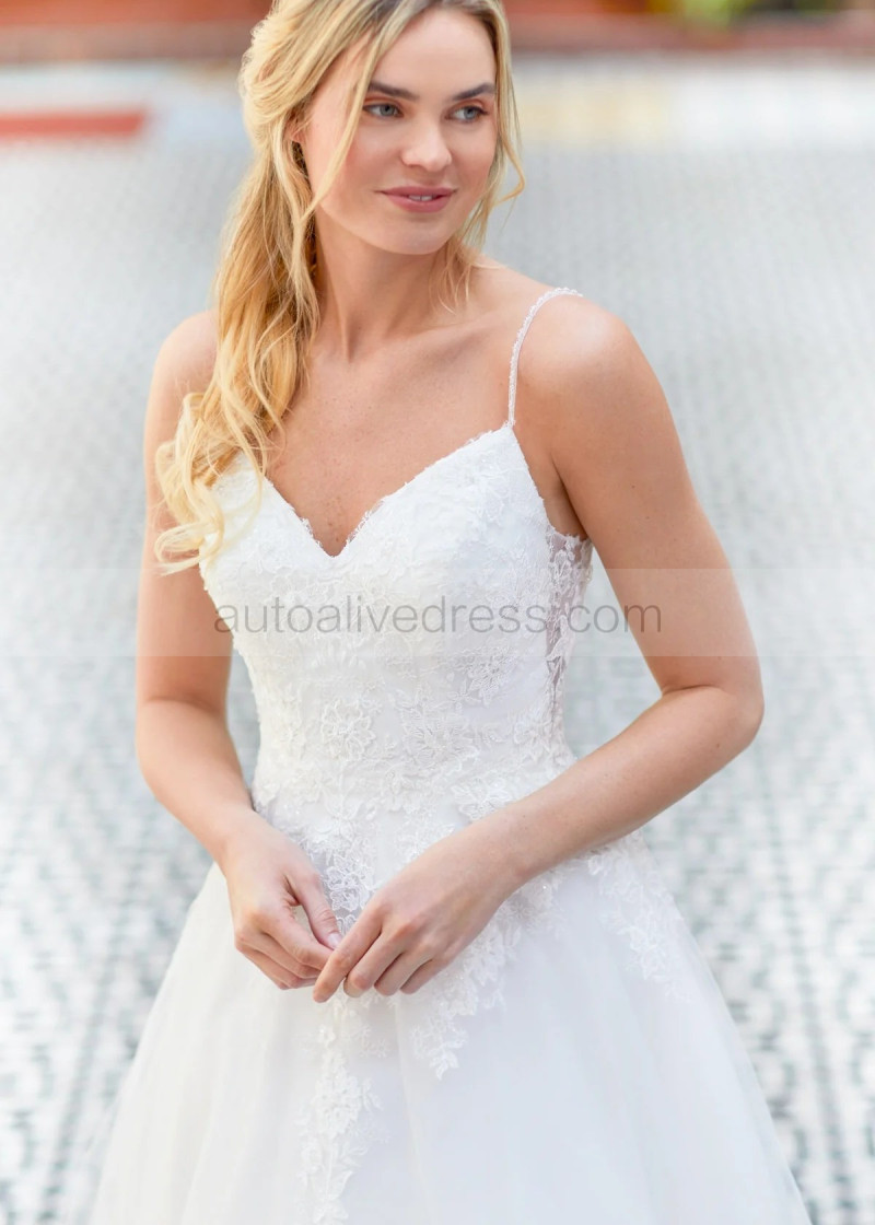 Beaded Spaghetti Straps Ivory Lace Tulle Unique Wedding Dress