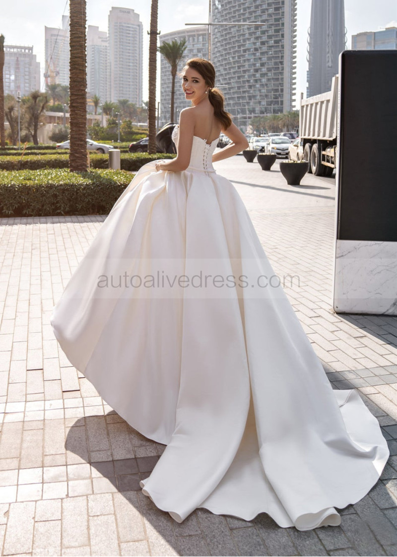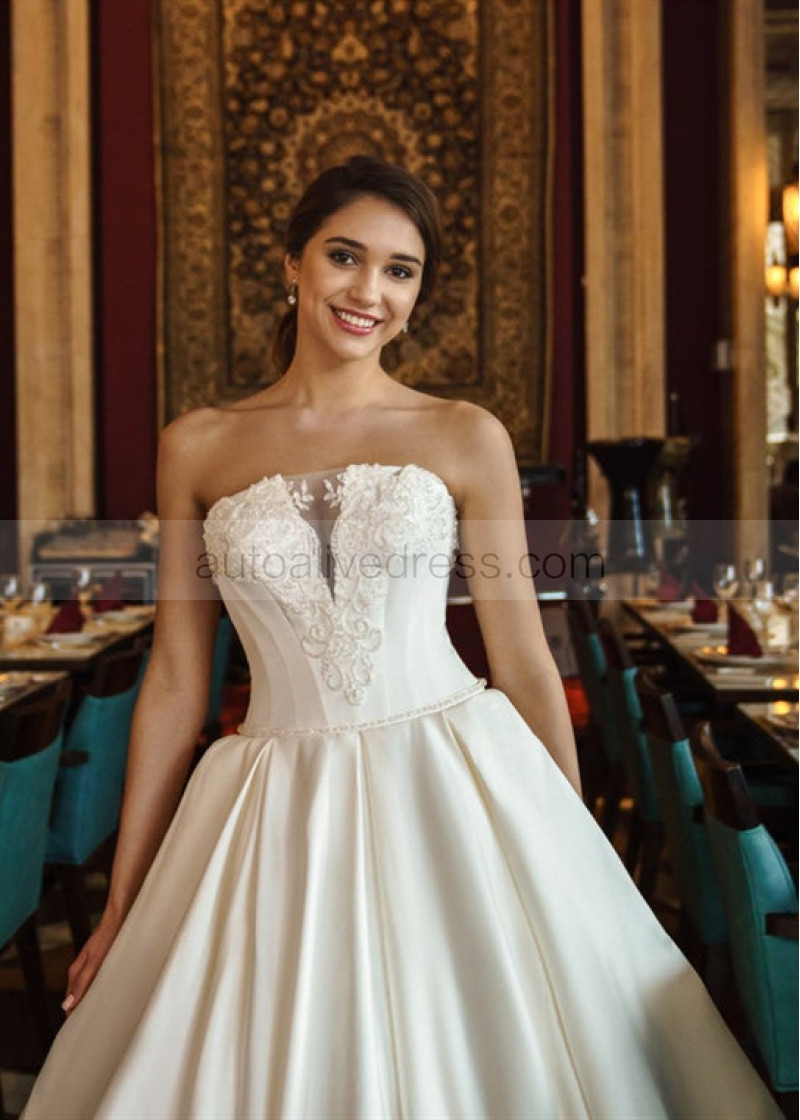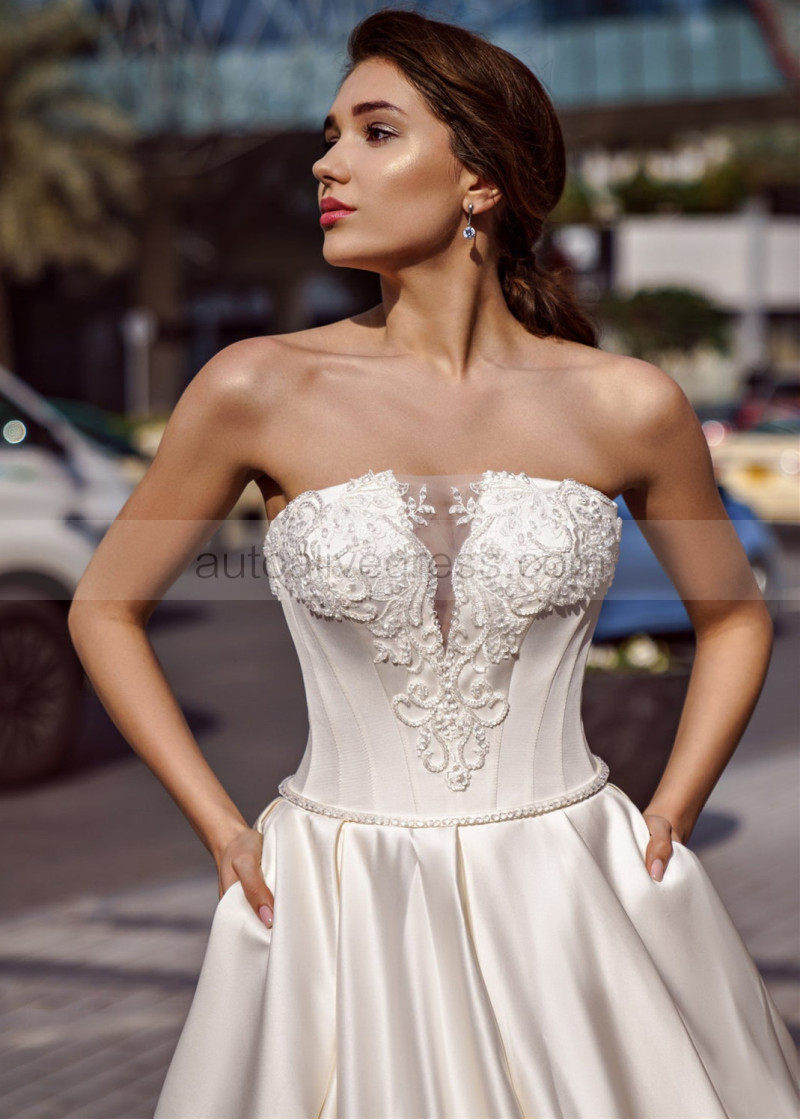 Beaded Strapless Ivory Satin Corset Back Wedding Dress
