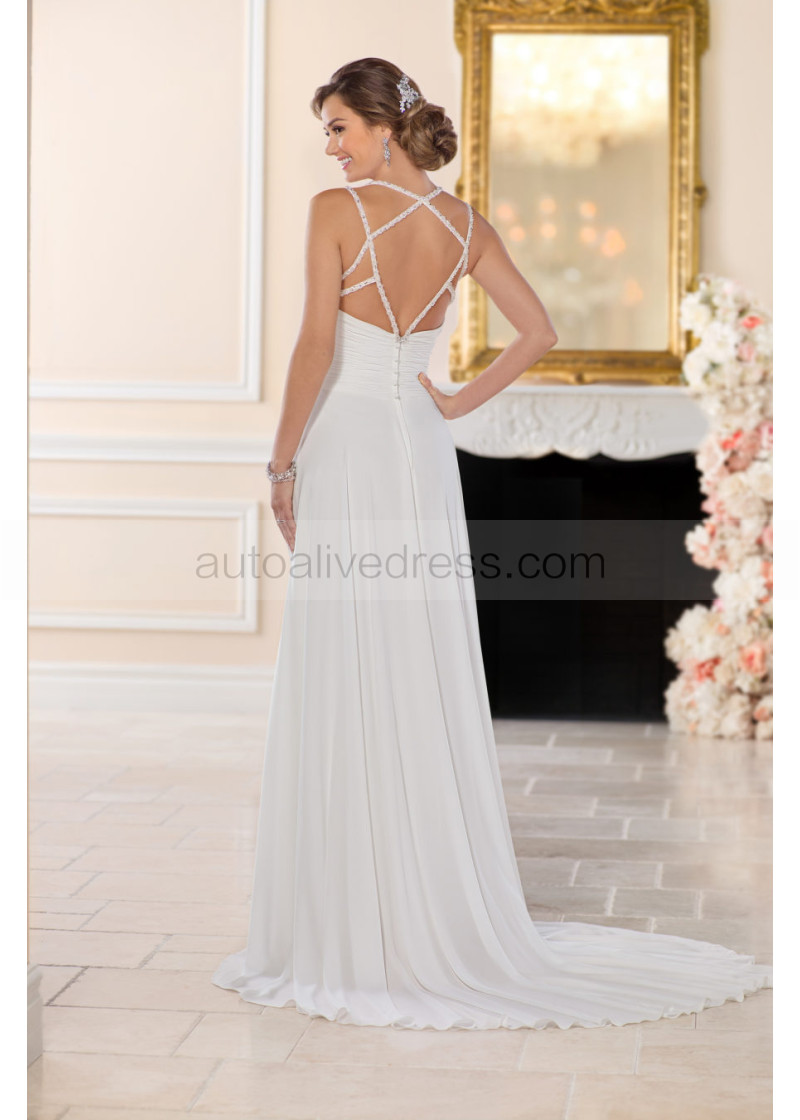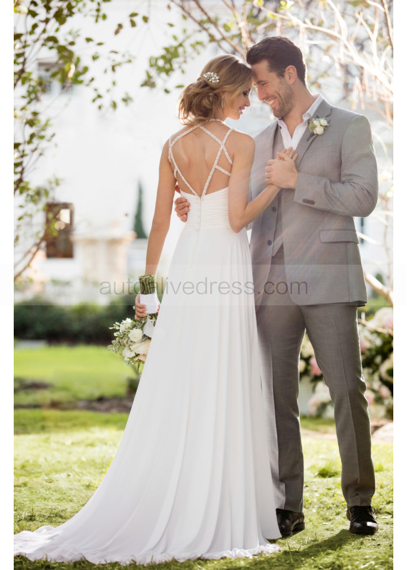 Beaded Straps Ivory Pleated Chiffon Backless Wedding Dress