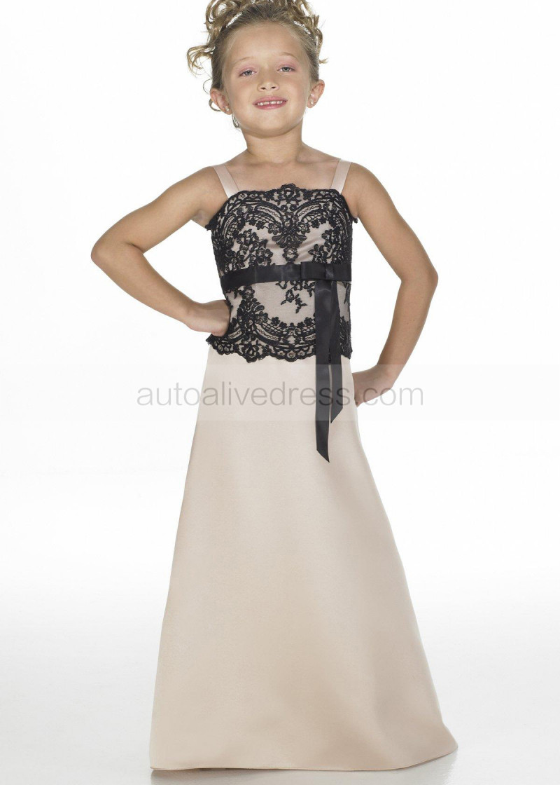 Black Lace Champagne Satin Stylish Junior Bridesmaid Dress