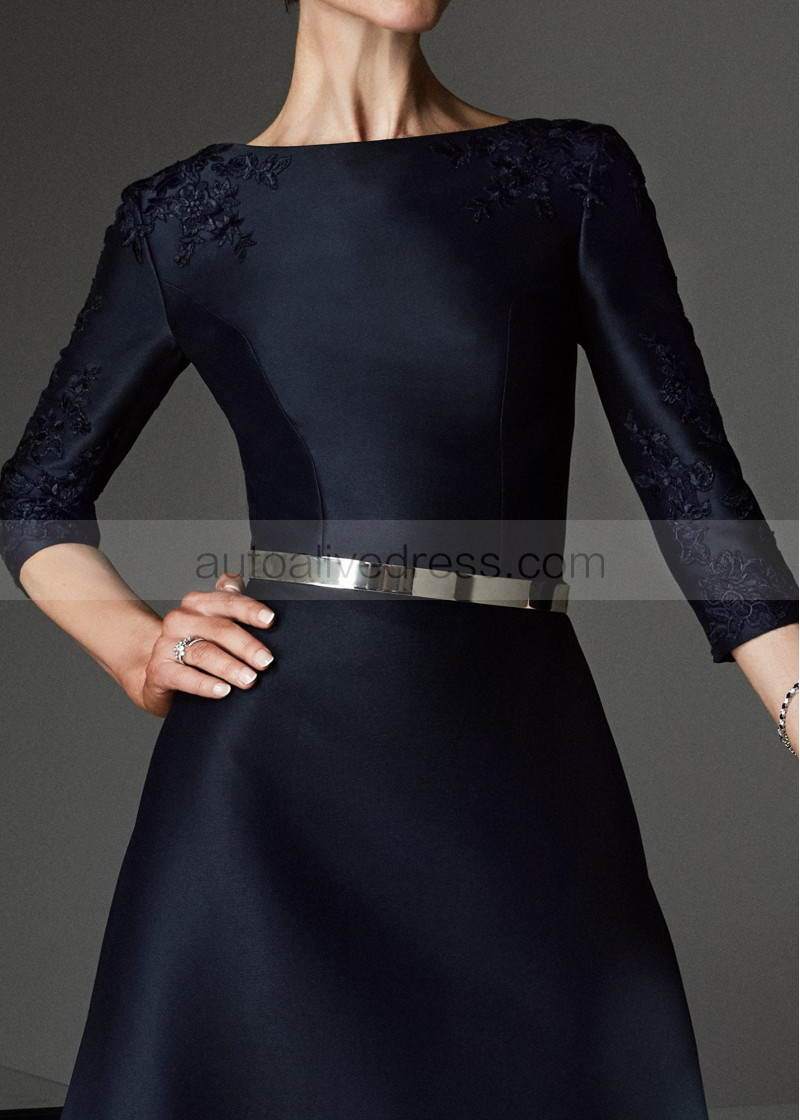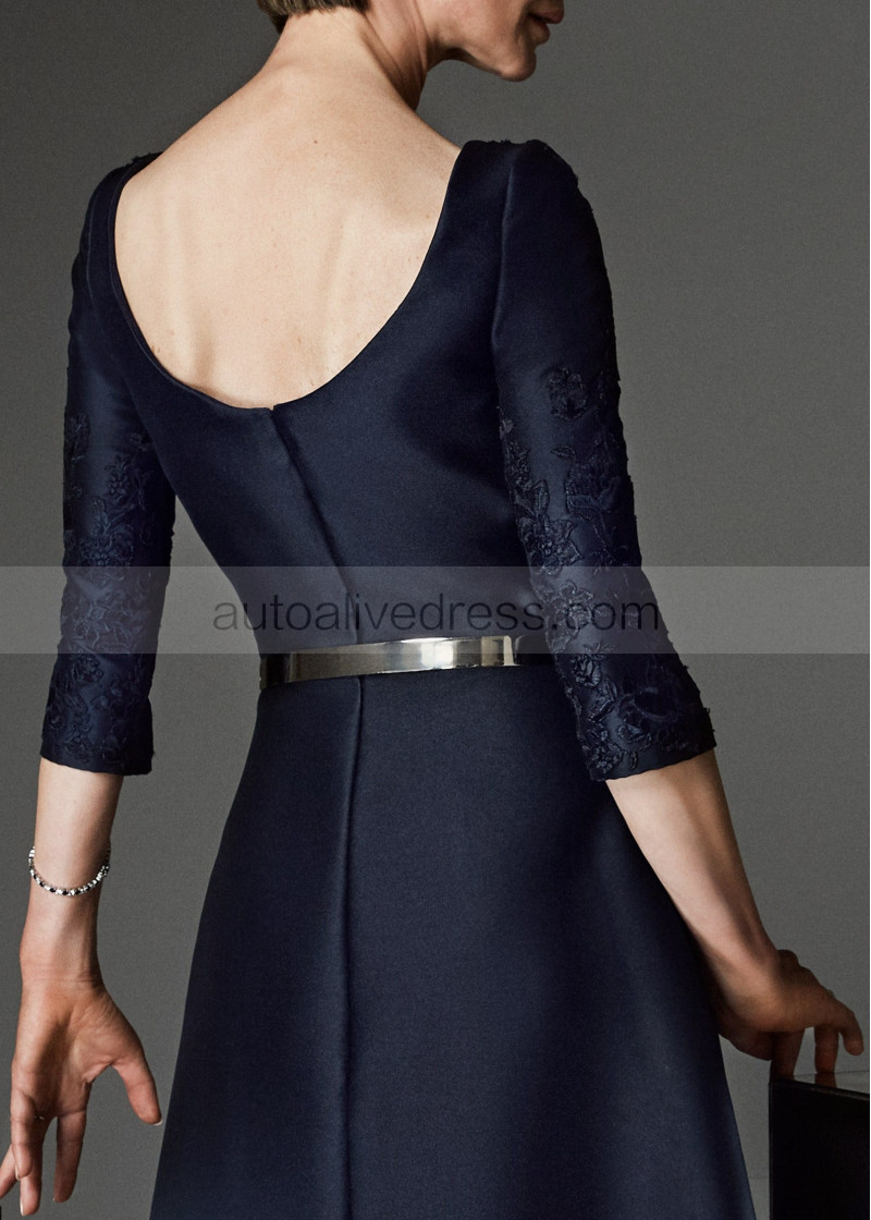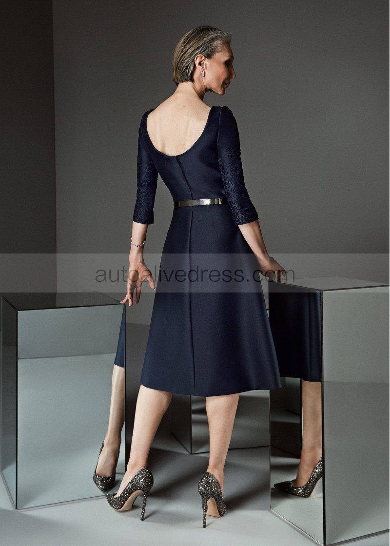 Black Lace Satin Scoop Back Mother Of The Bride Dress