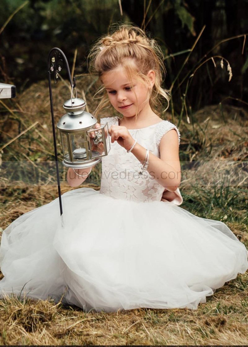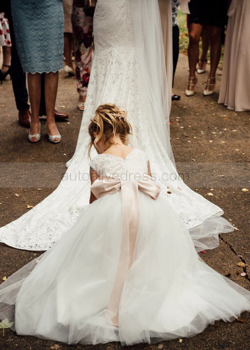 Cap Sleeves Velvet Tulle Flower Girl Dress