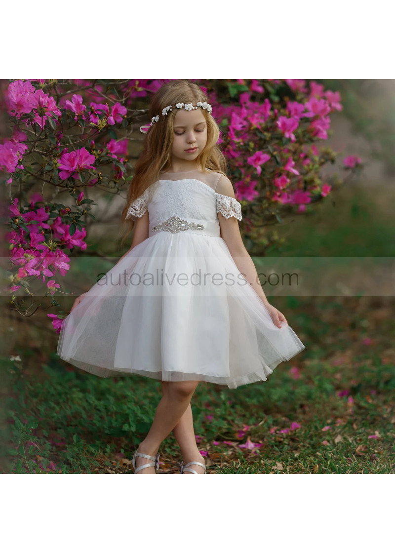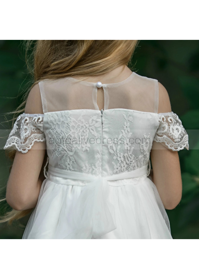 Cold Shoulder Lace Tulle Stunning Flower Girl Dress