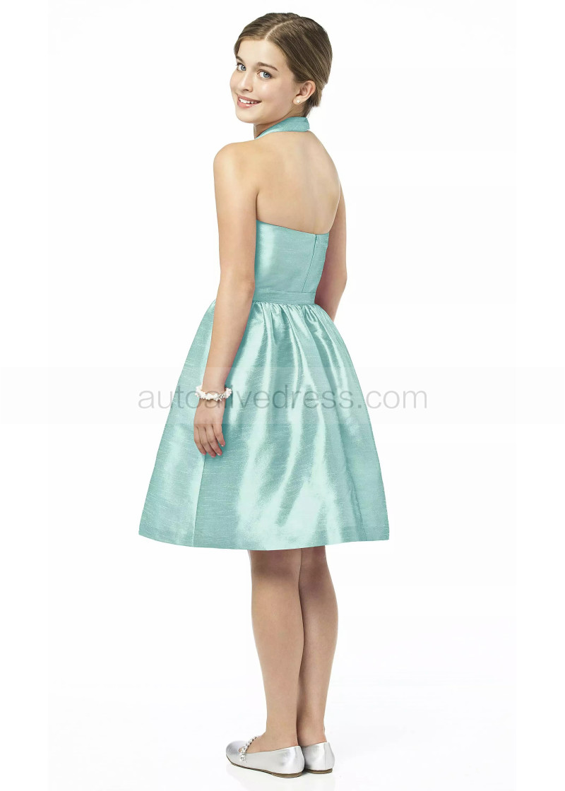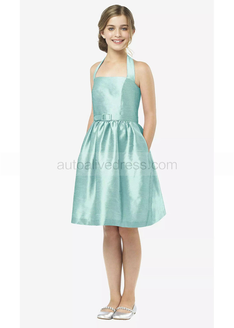 Halter Seaside Dupioni Junior Bridesmaid Dress With Pockets