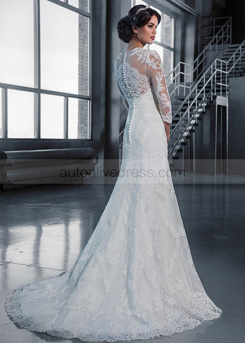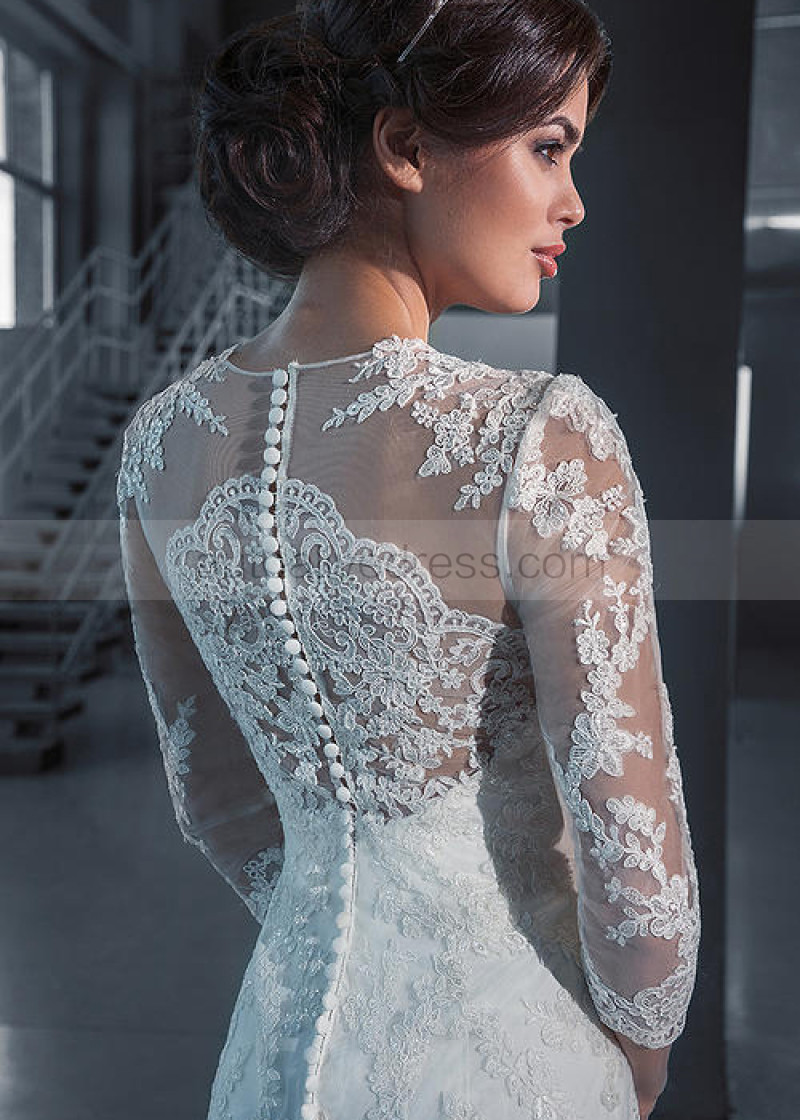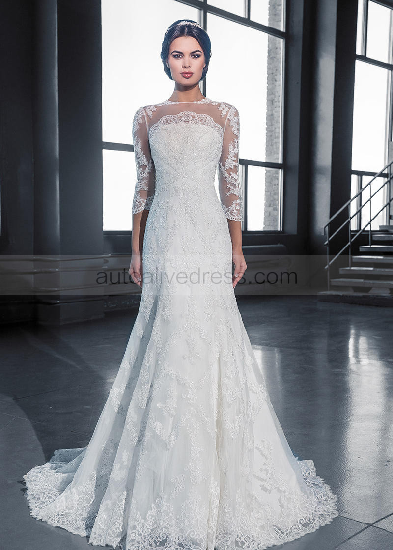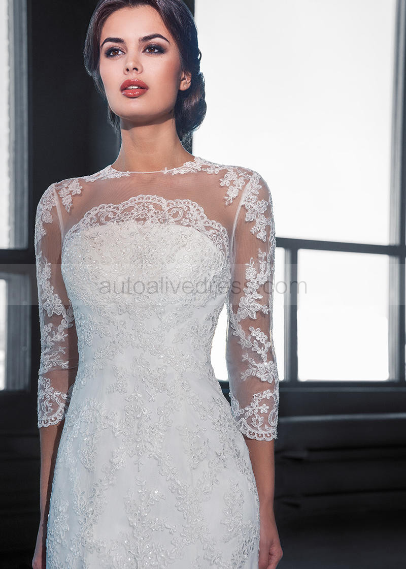Illusion Neck Ivory Lace Tulle Elegant Wedding Dress