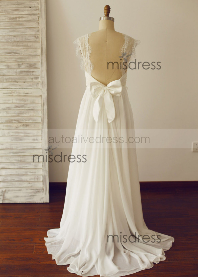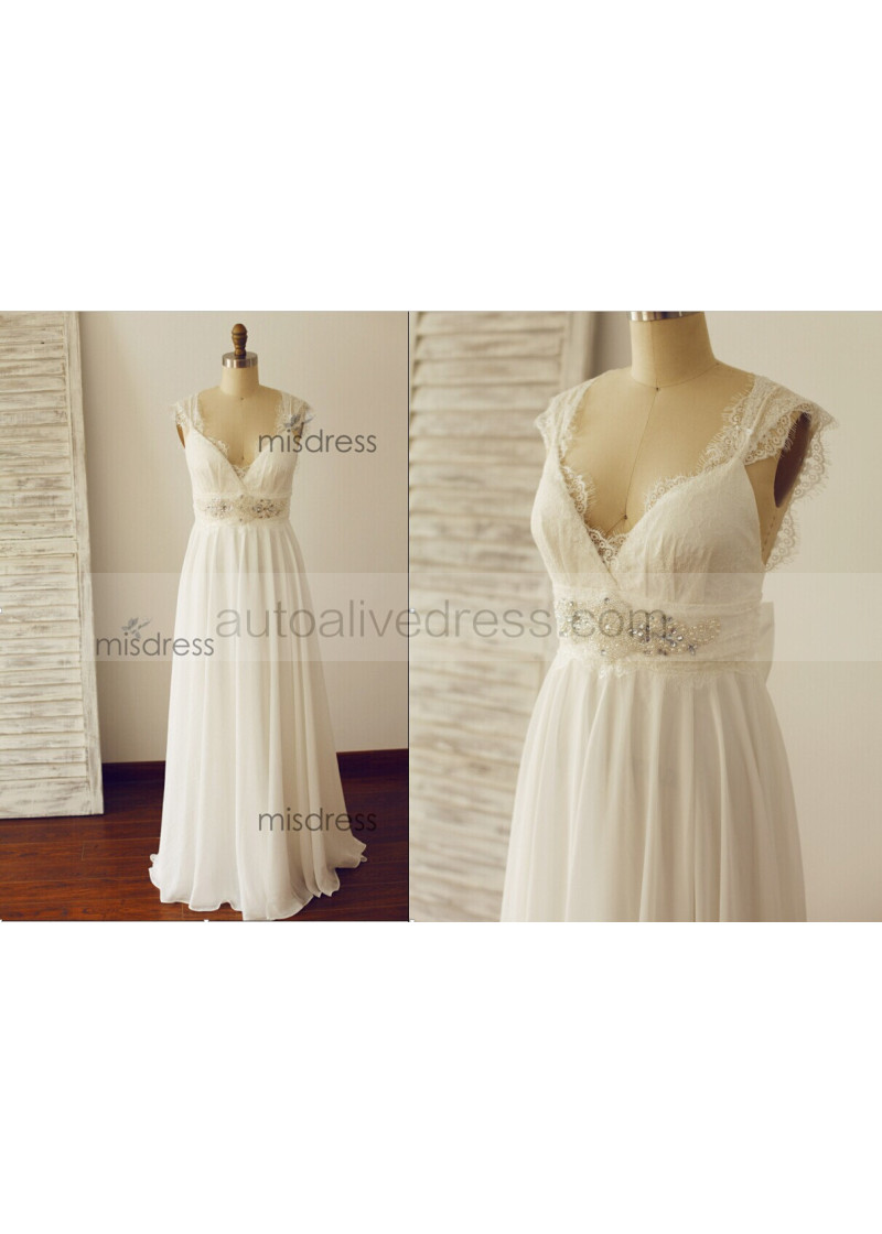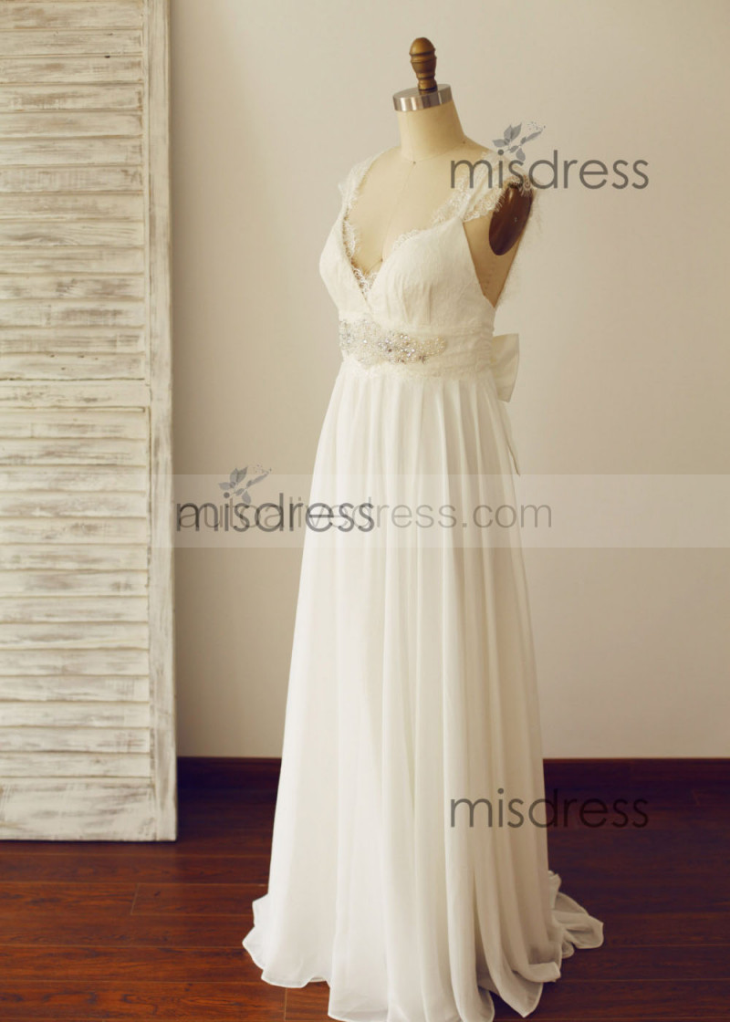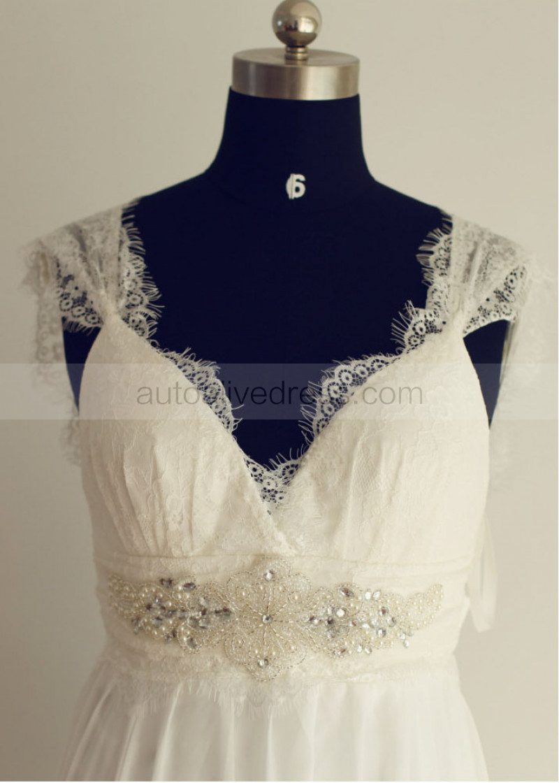 Ivory Eyelash Lace Chiffon Beaded Empire Waist Wedding Dress