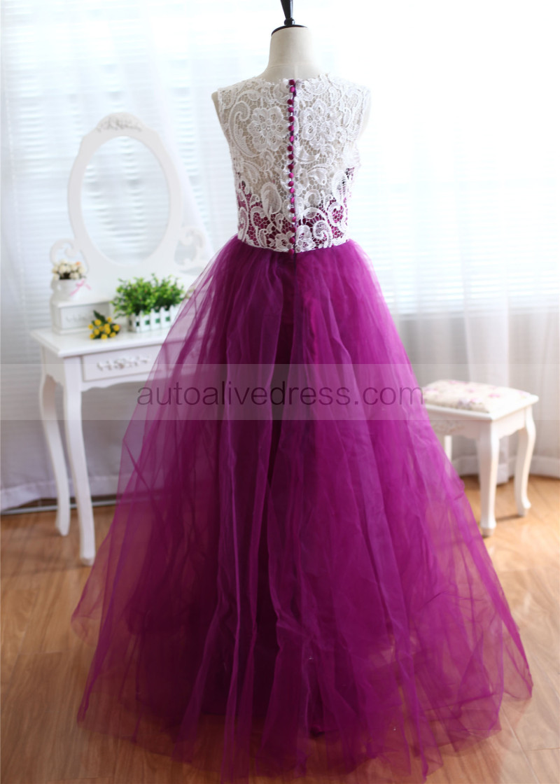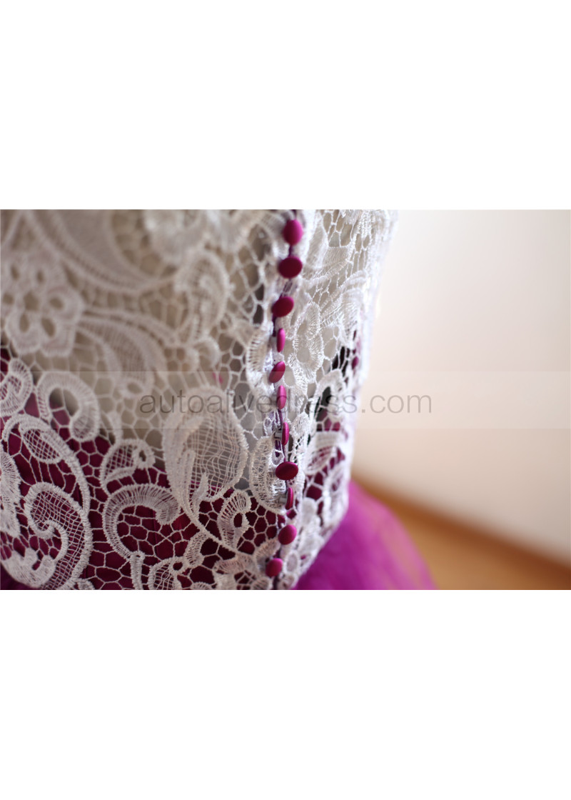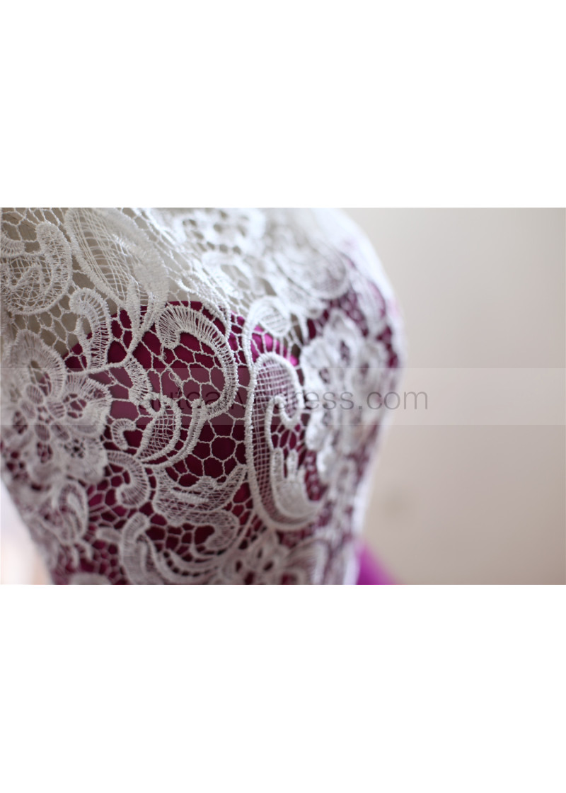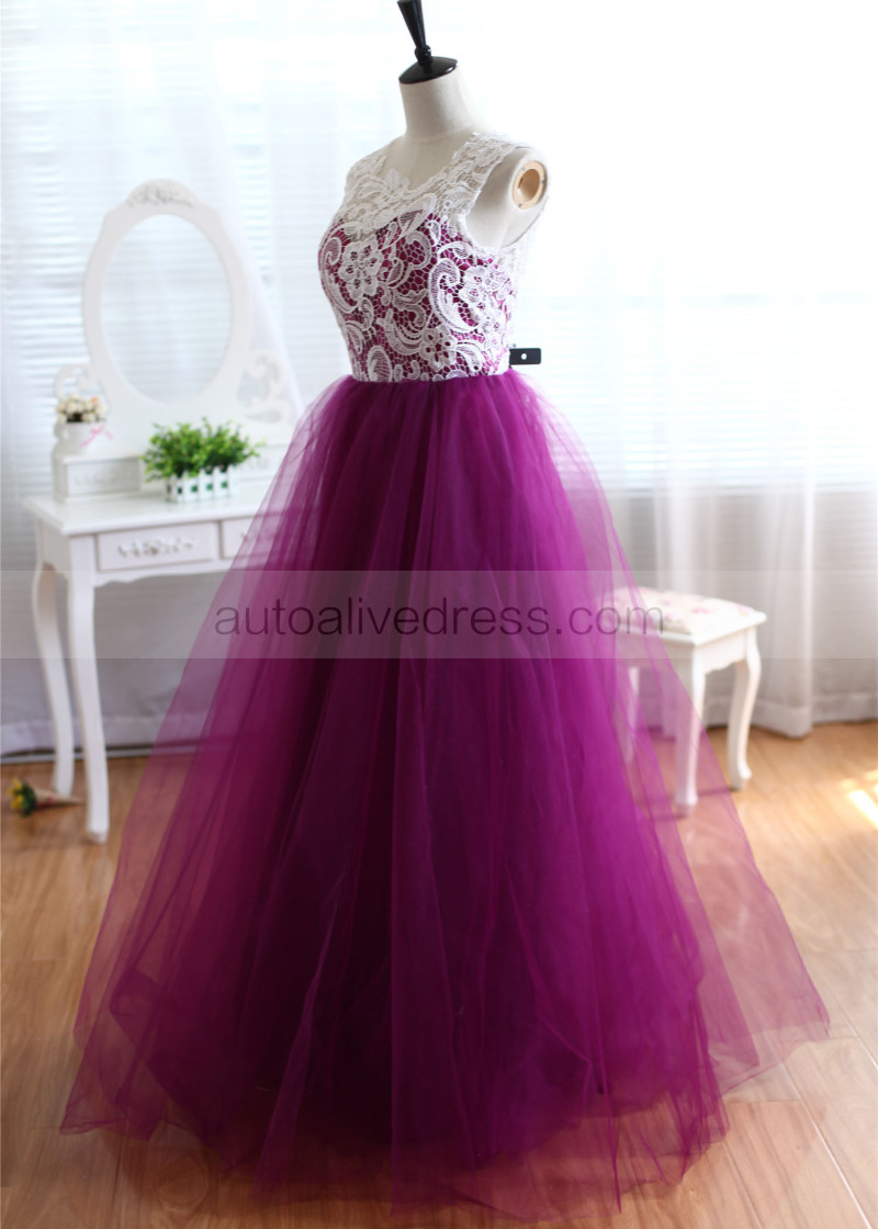 Ivory Lace Plum Tulle Elegant Maxi Prom Dress