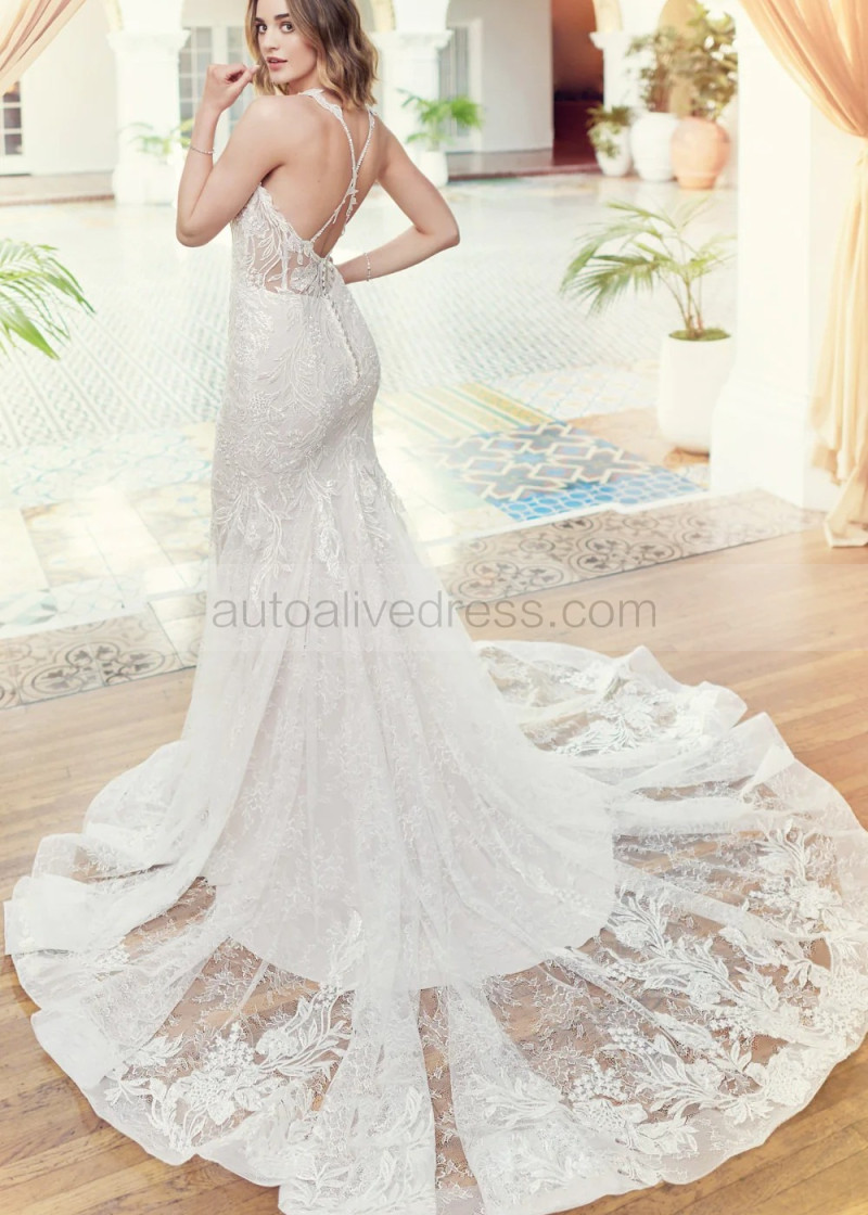Ivory Lace Tulle Cross Back Princess Wedding Dress