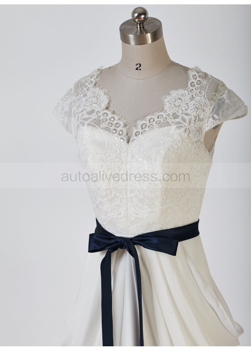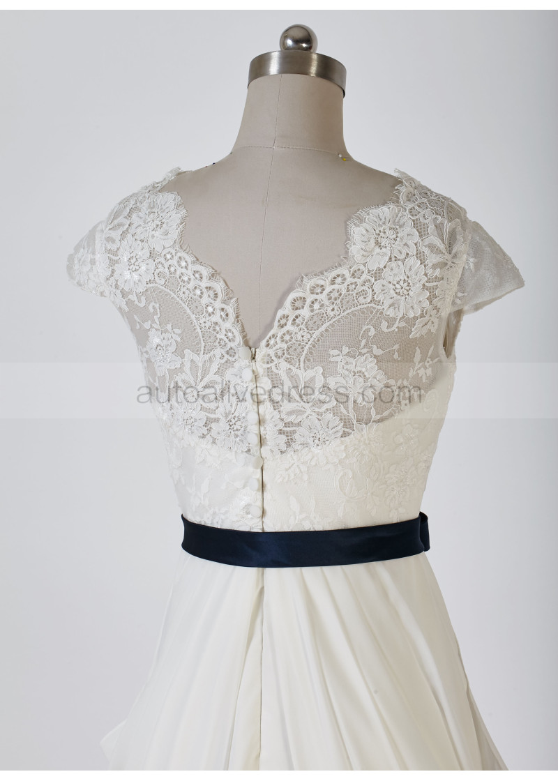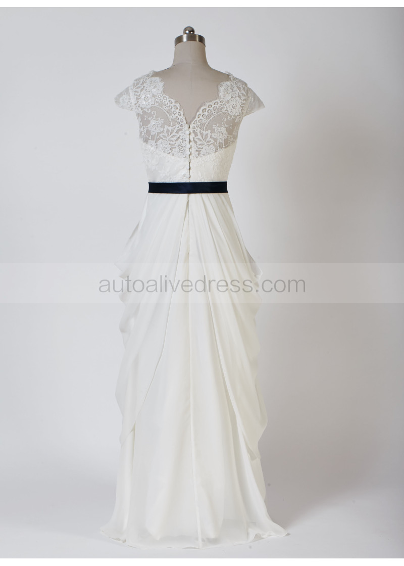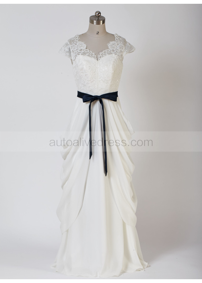 Ivory Scalloped Lace Chiffon Draped Wedding Dress