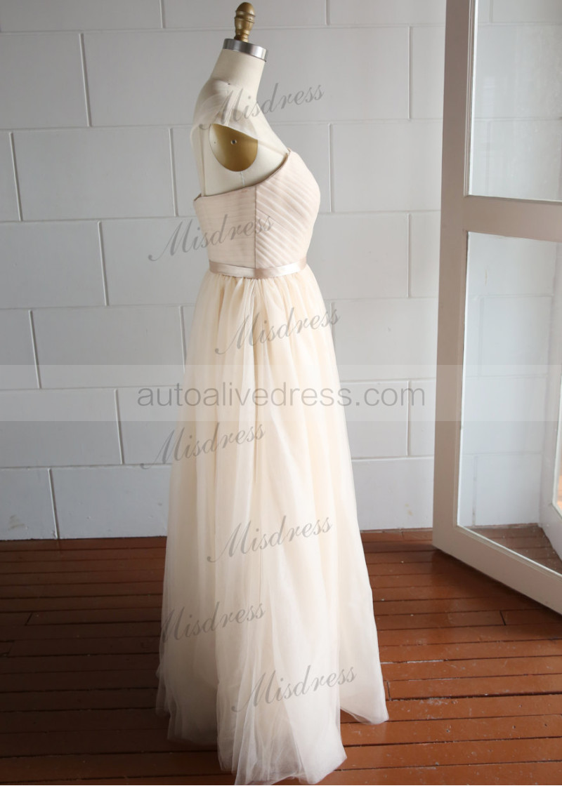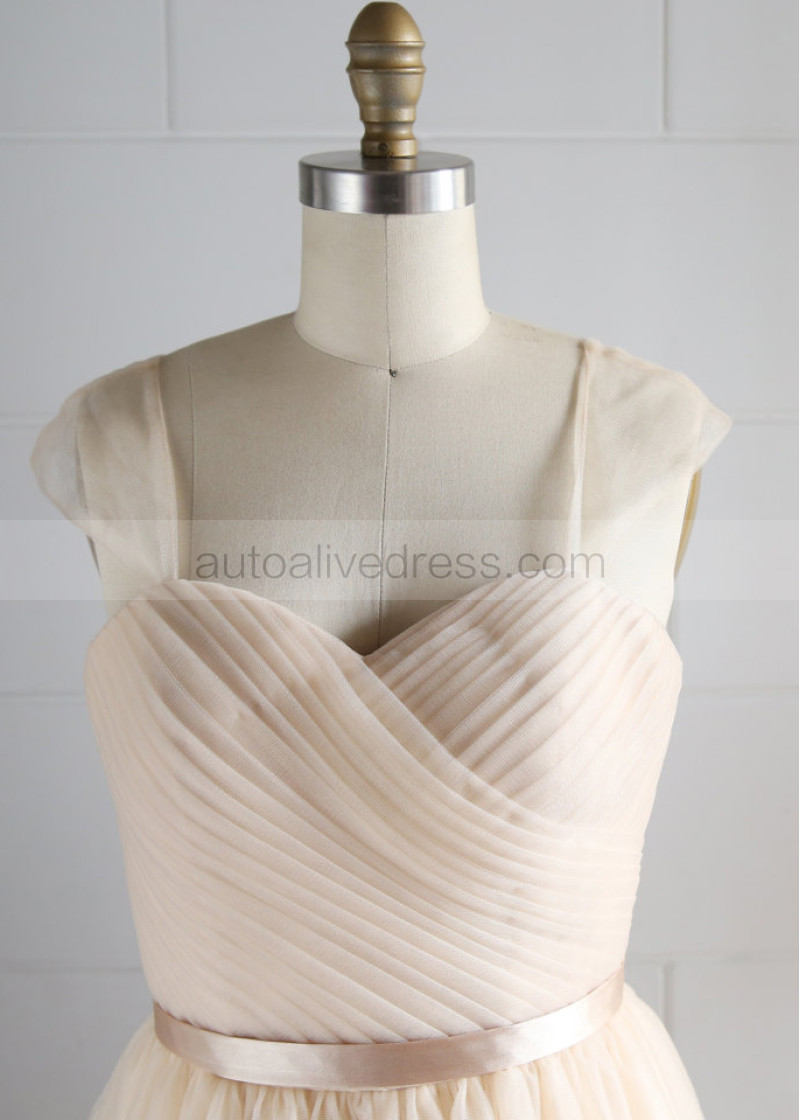 Light Champagne Ruched Tulle Dreamy Bridesmaid Dress