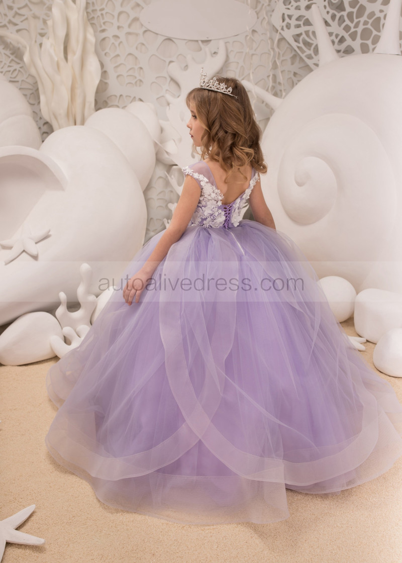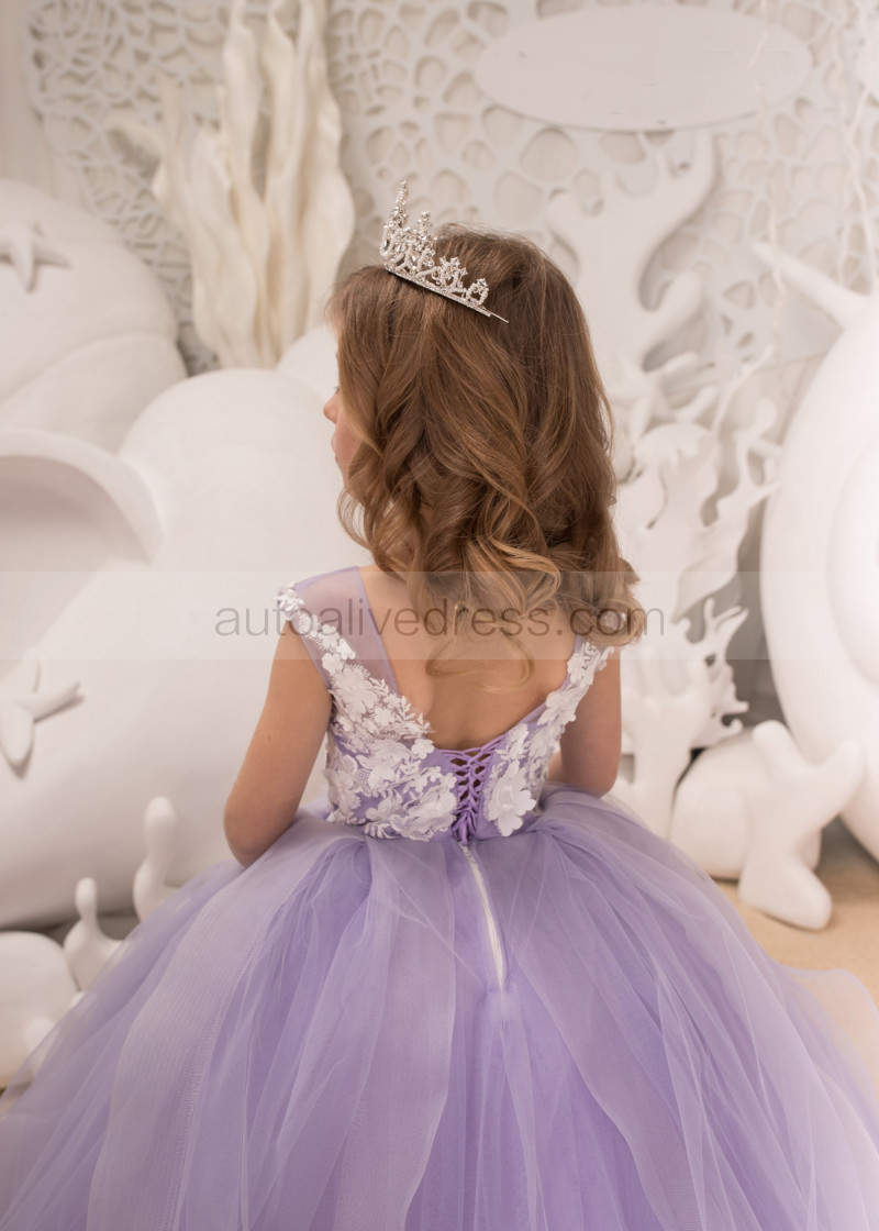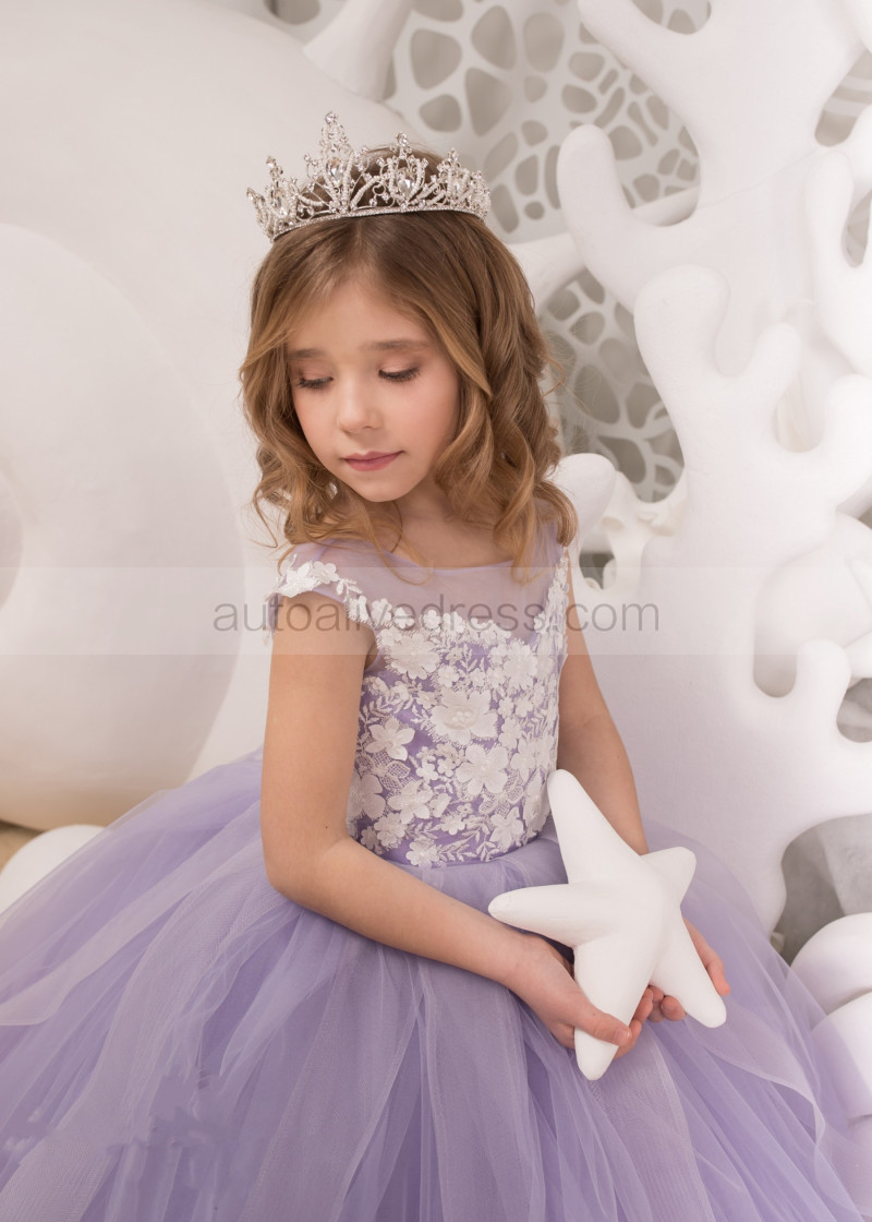 Lilac Lace Tulle Corset Back Tender Flower Girl Dress