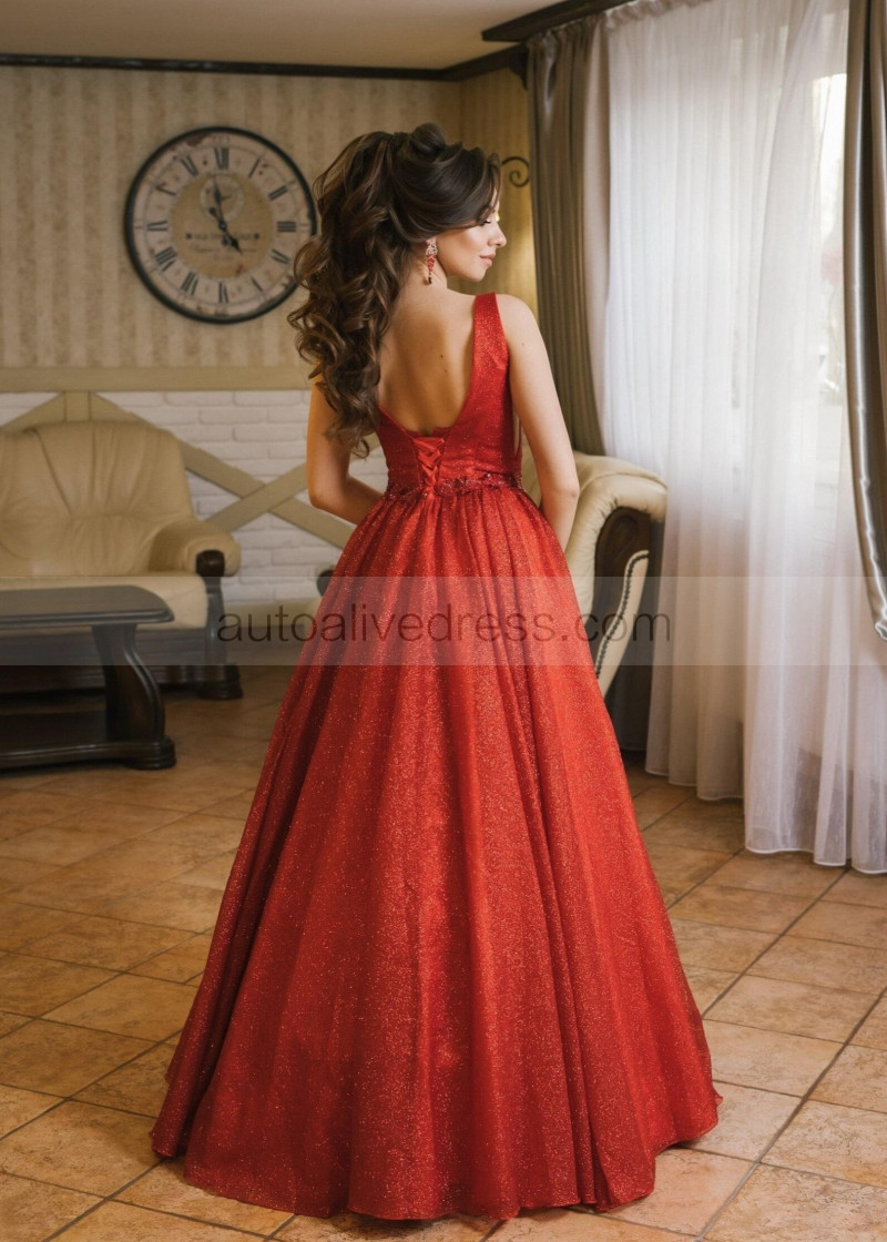 Red Shiny Corset Back Evening Dress