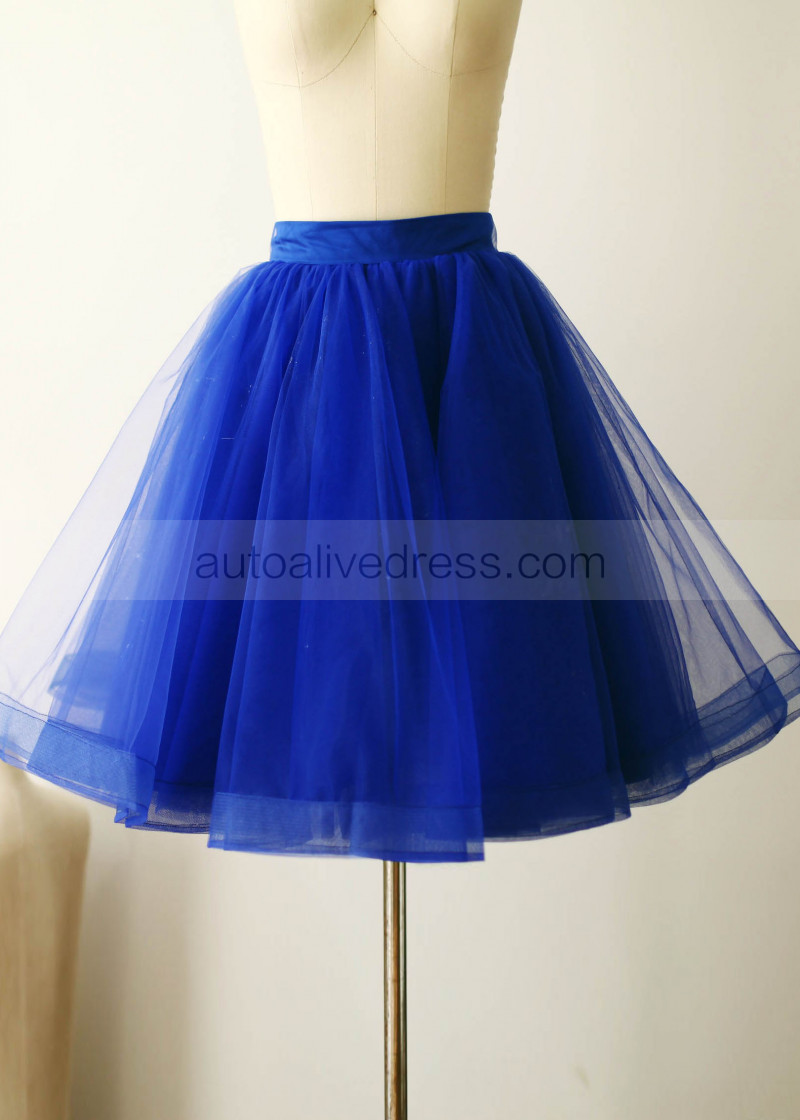 Royal Blue Navy Blue Satin Belt Tulle Skirt