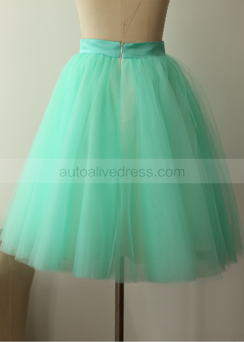 Turquoise Blue Satin Belt Tulle Knee Length Skirt