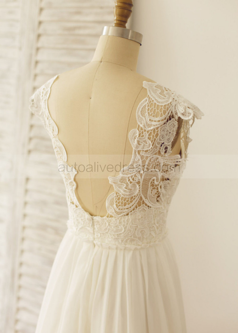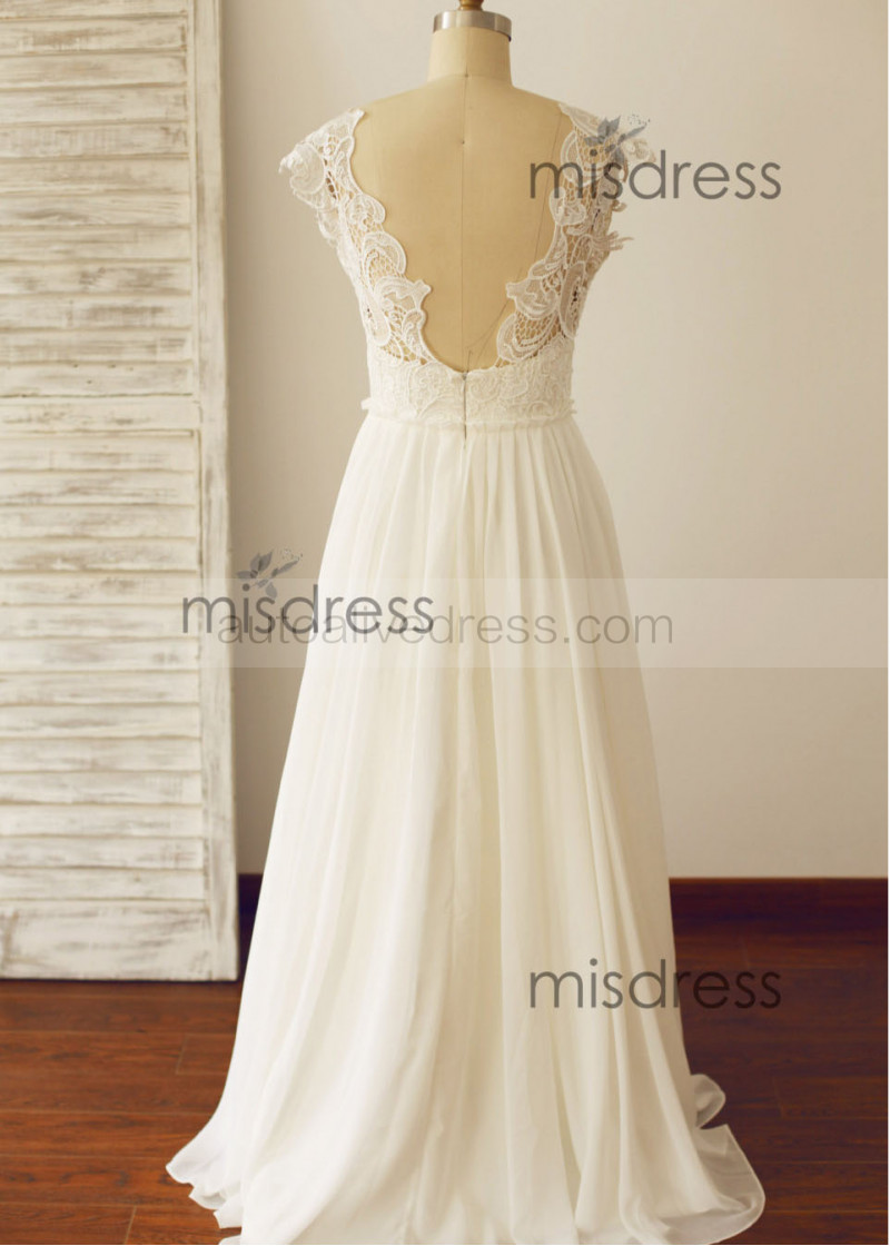 Backless Lace Chiffon Boho Beach Wedding Dress