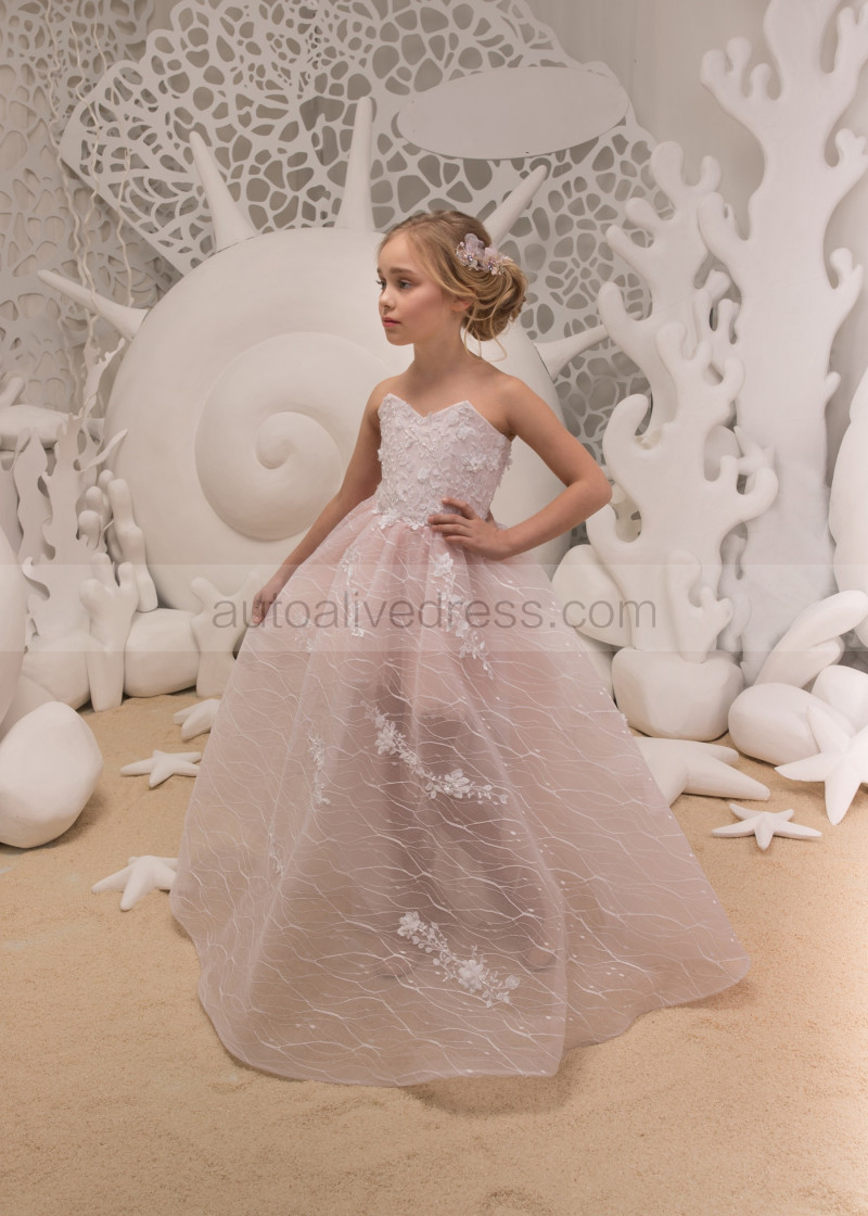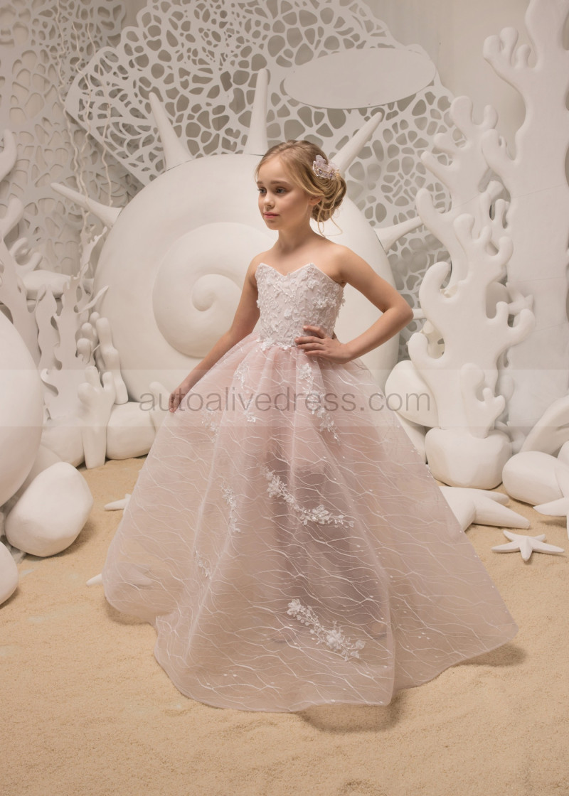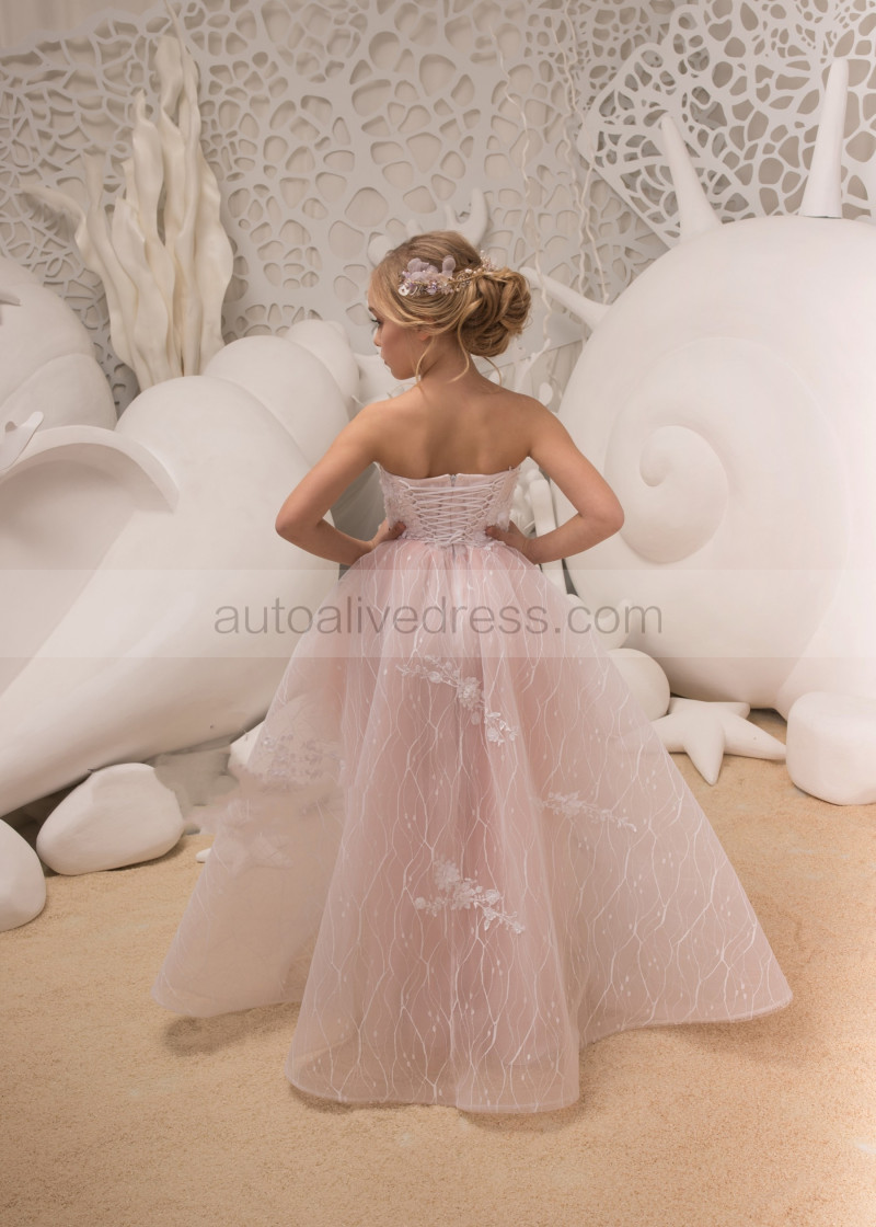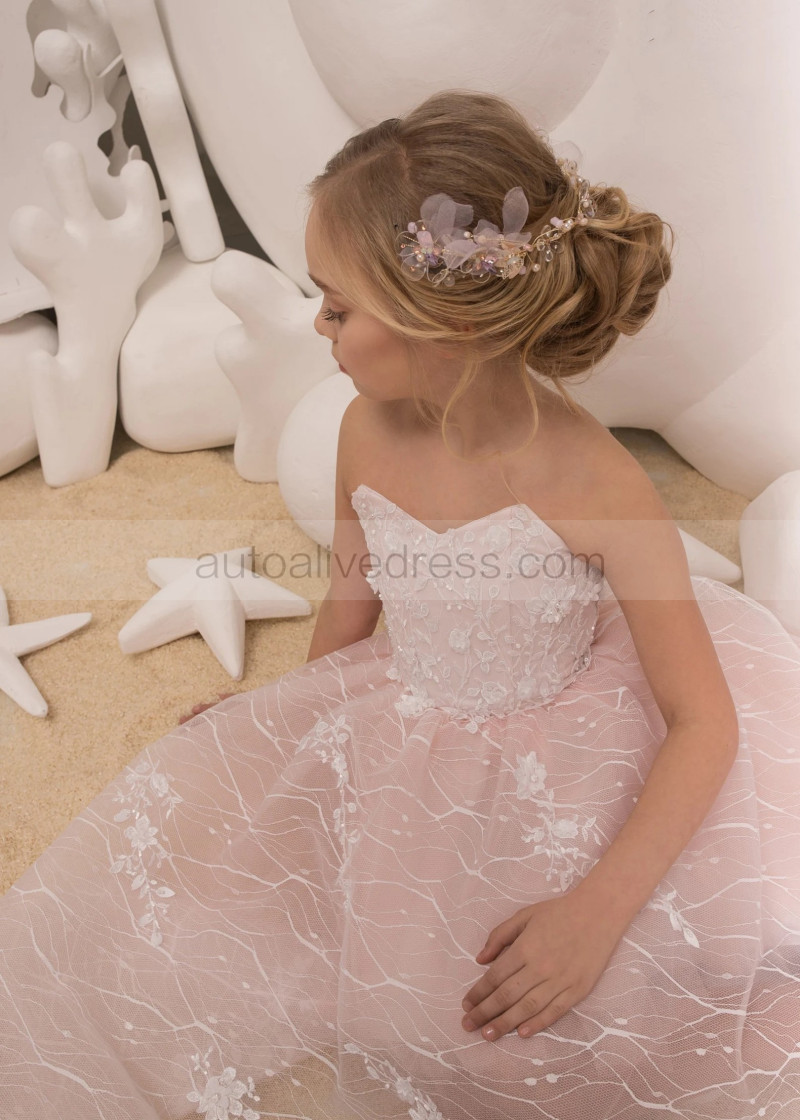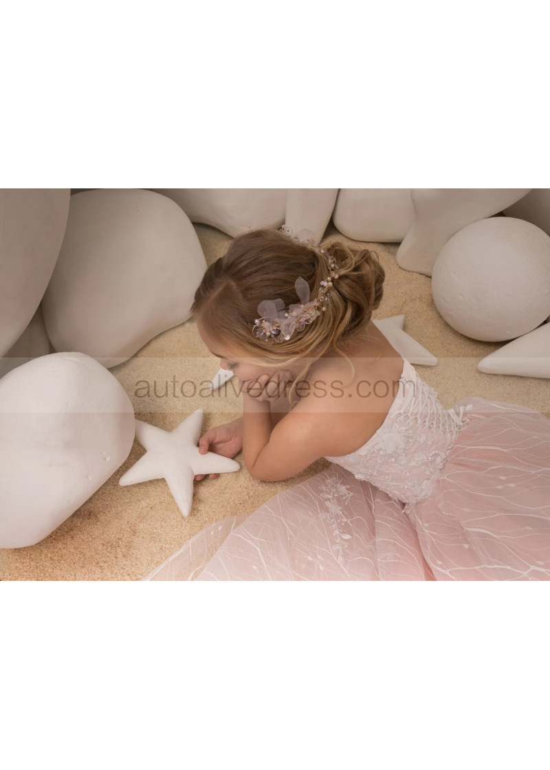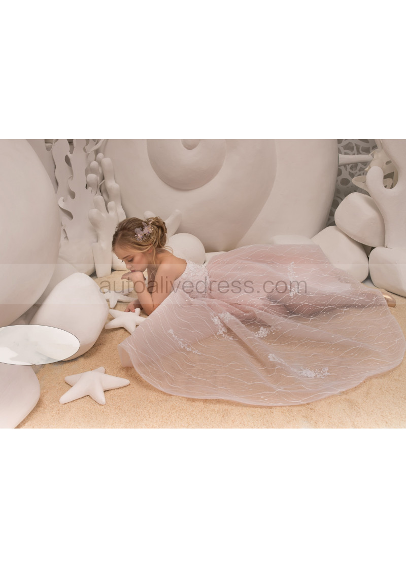 Beaded Blush Pink Lace Tulle Corset Back Flower Girl Dress