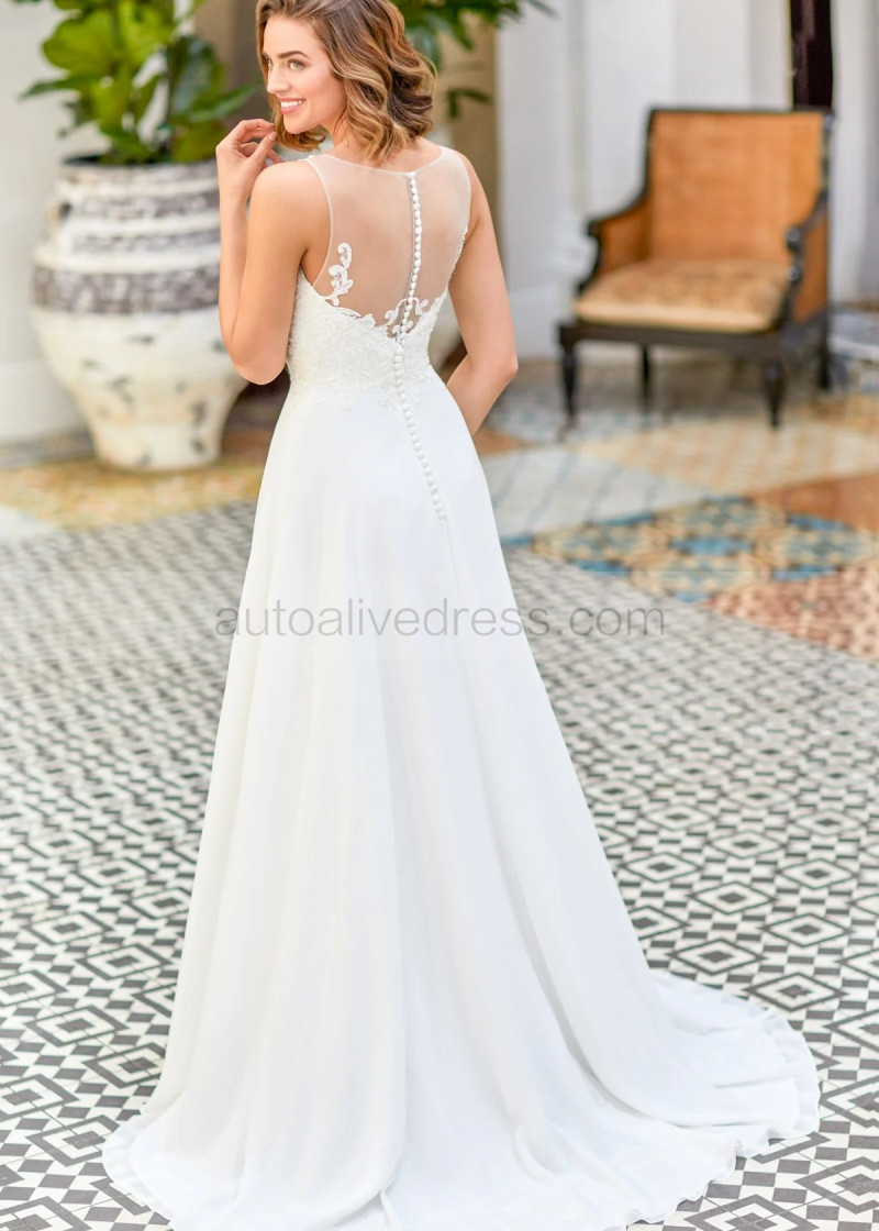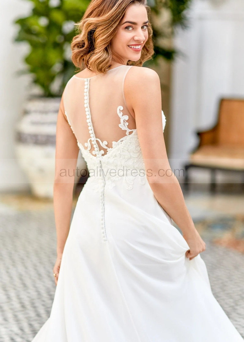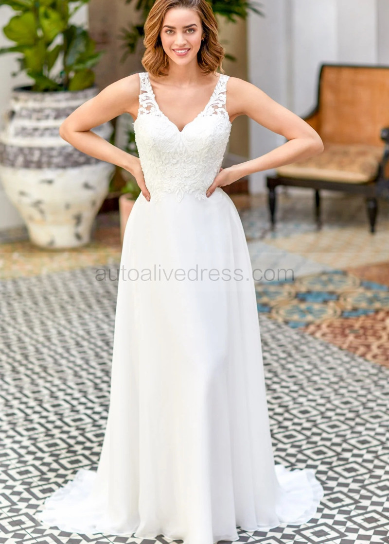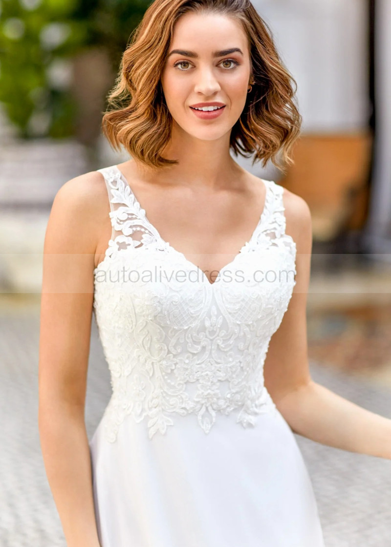 Beaded Ivory Lace Chiffon Flowing Wedding Dress