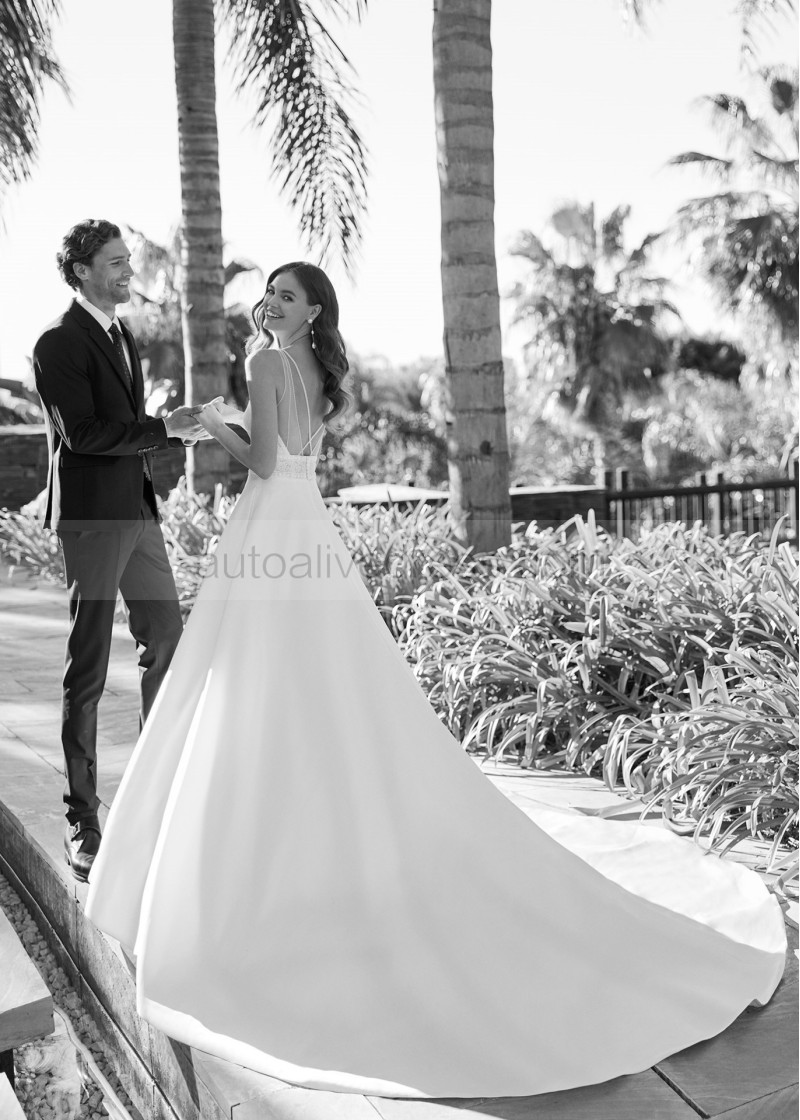Beaded Ivory Lace Satin Cross Back Unique Wedding Dress