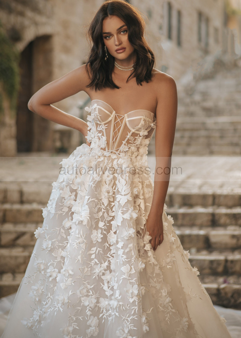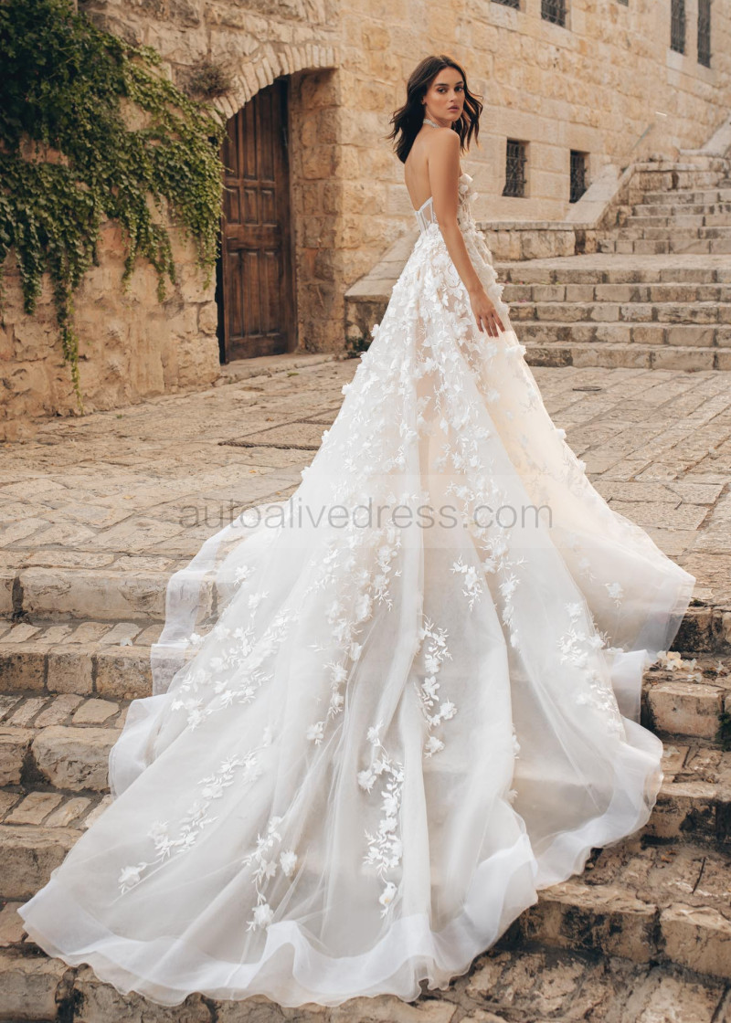 Beaded Ivory Lace Tulle Floral Chic Wedding Dress