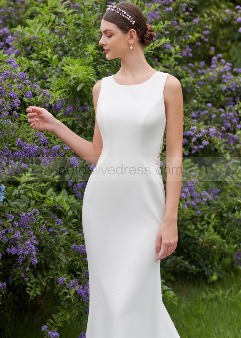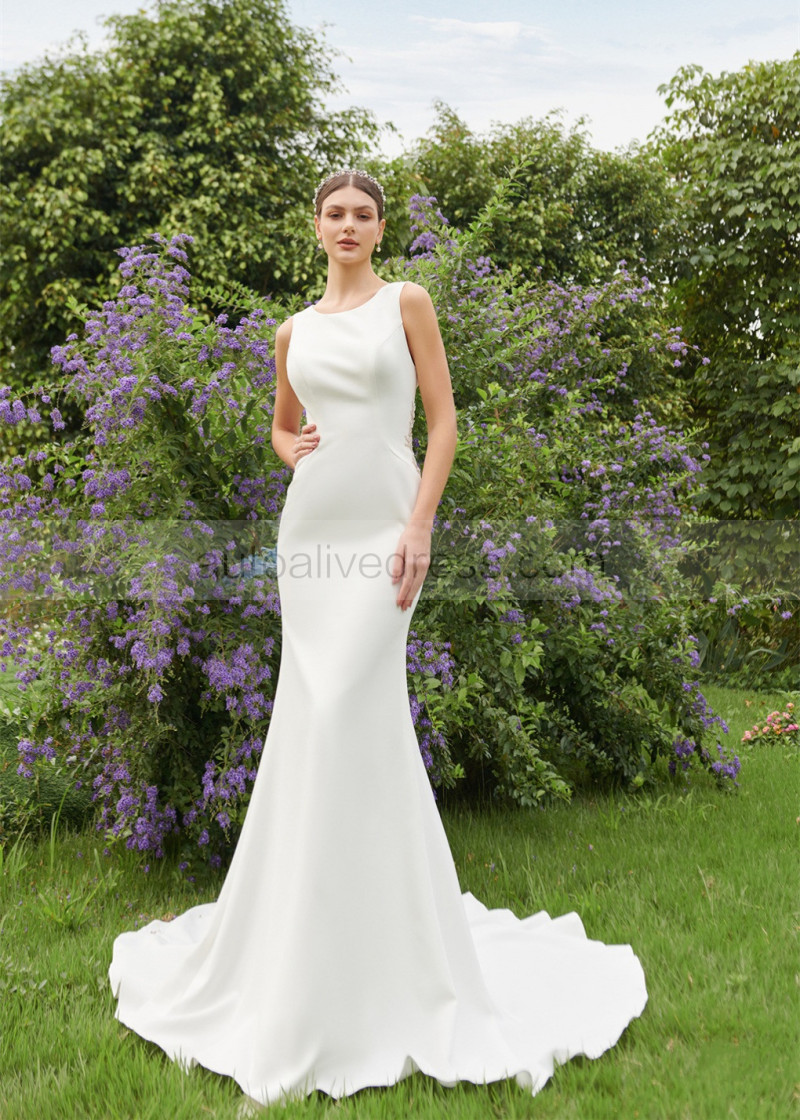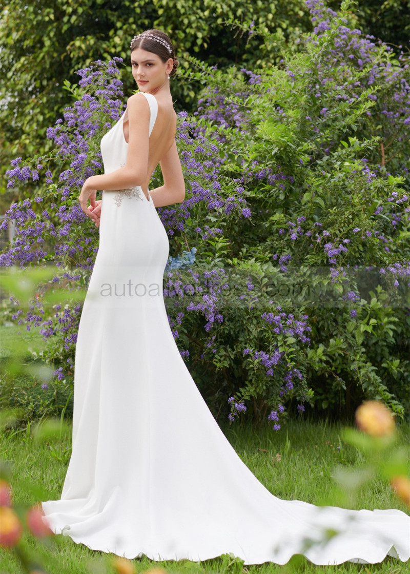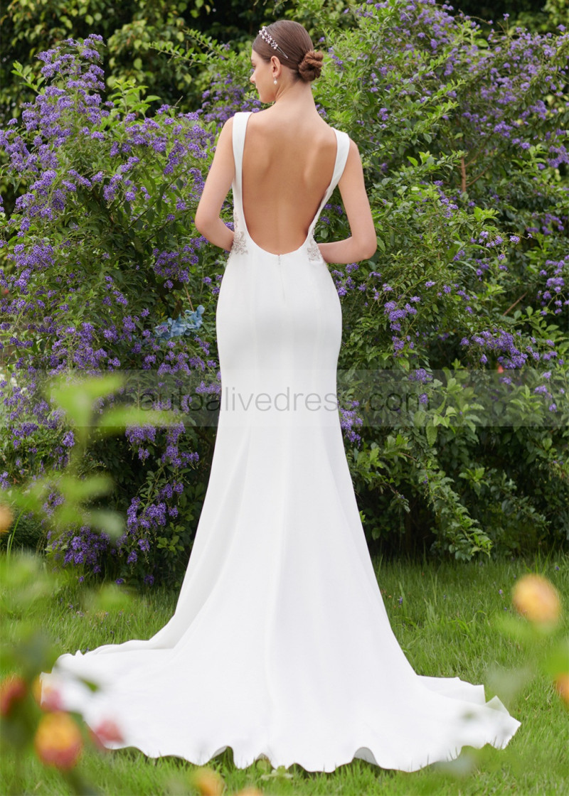 Beaded Ivory Satin Open Back Sexy Mermaid Wedding Dress