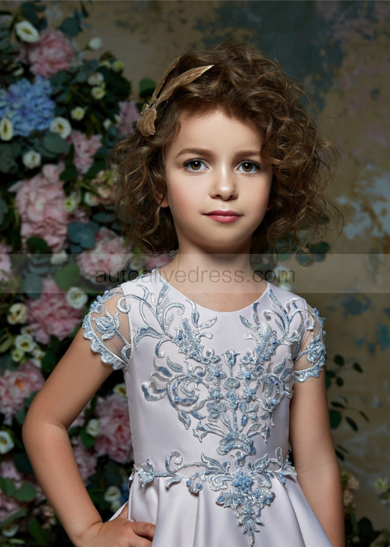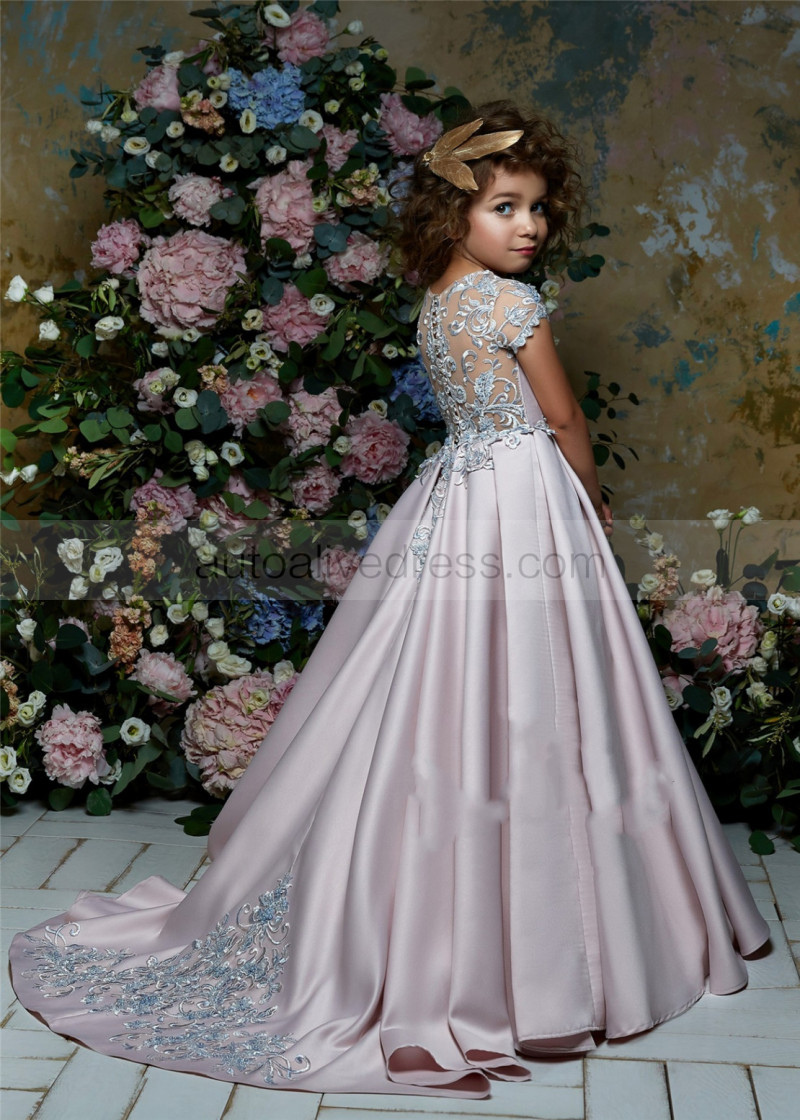Beaded Lace Satin Illusion Back Flower Girl Dress