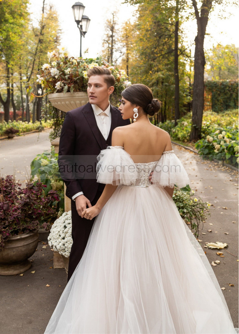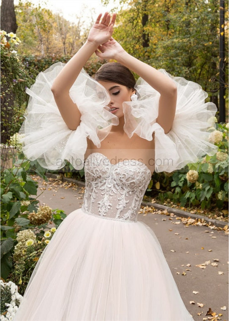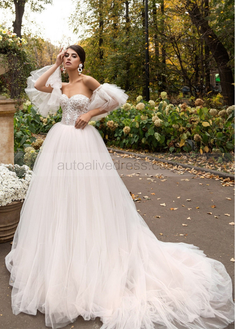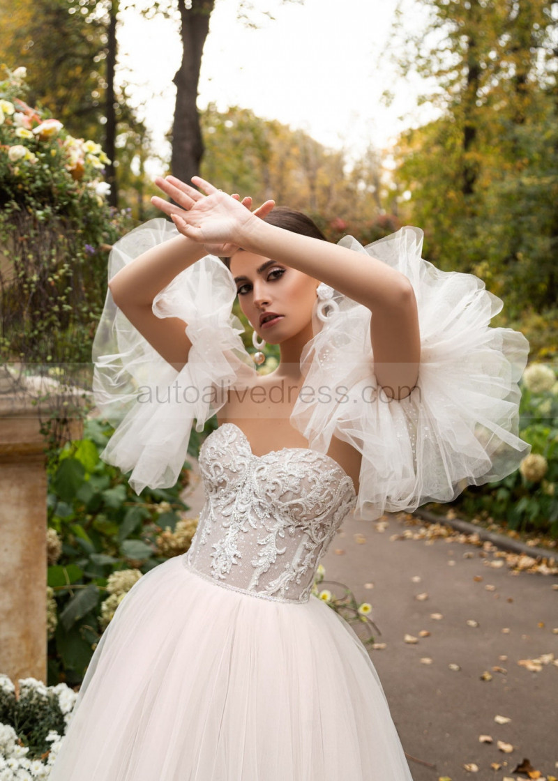 Beaded Lace Tulle Wedding Dress With Detachable Sleeves