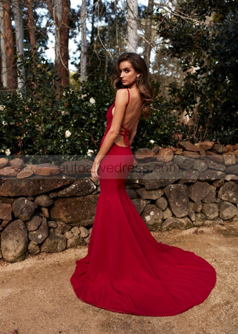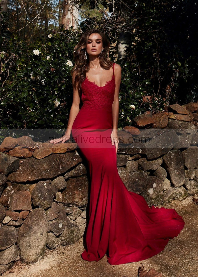 Beaded Red Lace Ponti Gorgeous Long Evening Dress