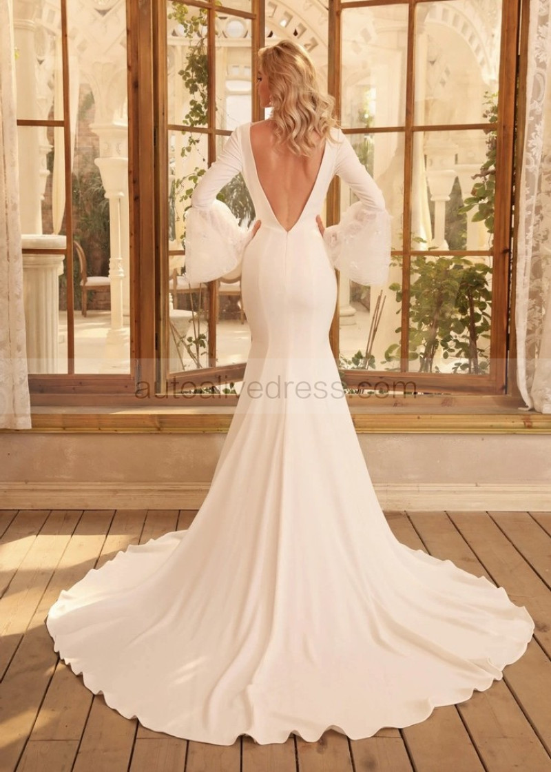 Bell Sleeves Ivory Satin Lace Gorgeous Wedding Dress