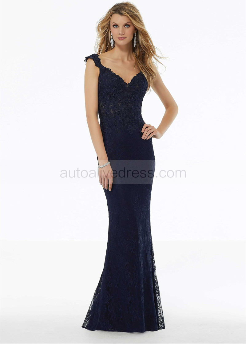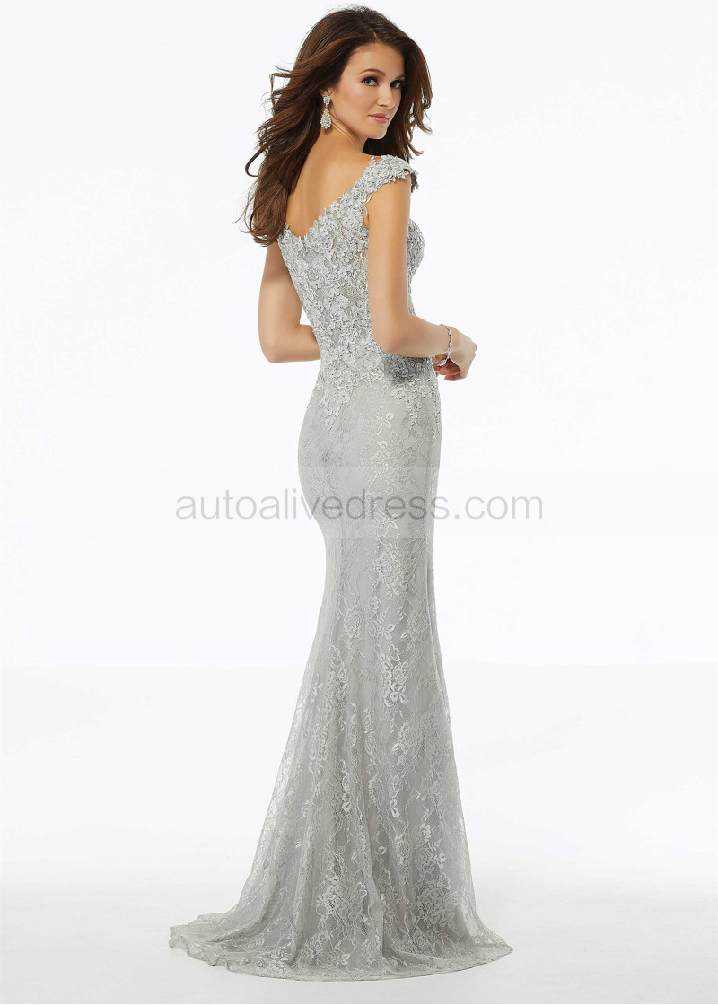 Cap Sleeves Beaded Lace Evening Dress