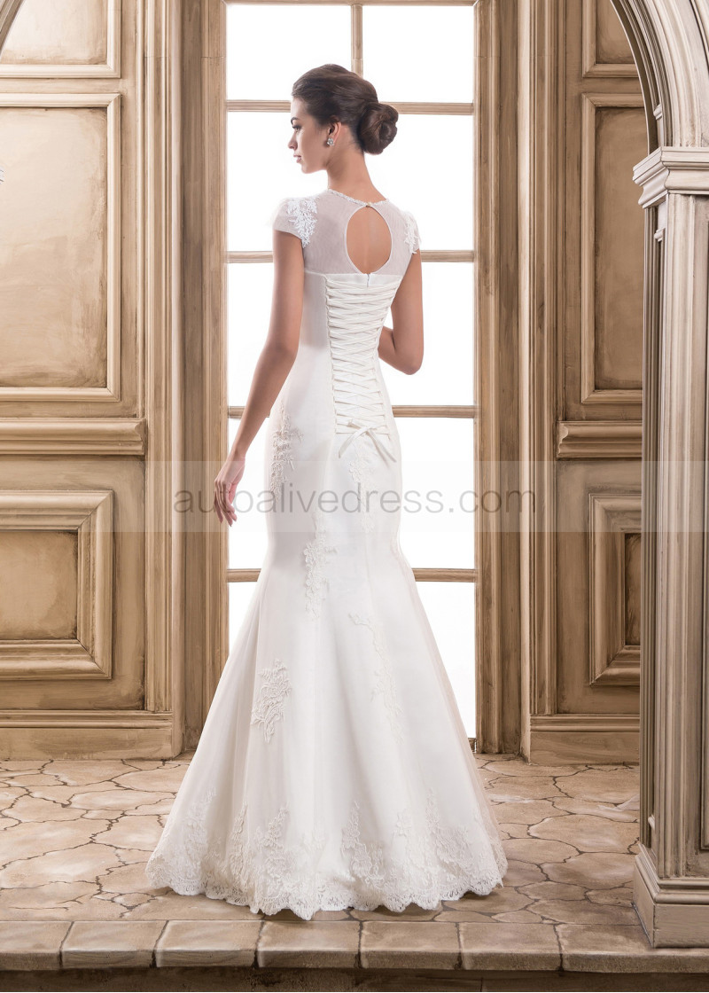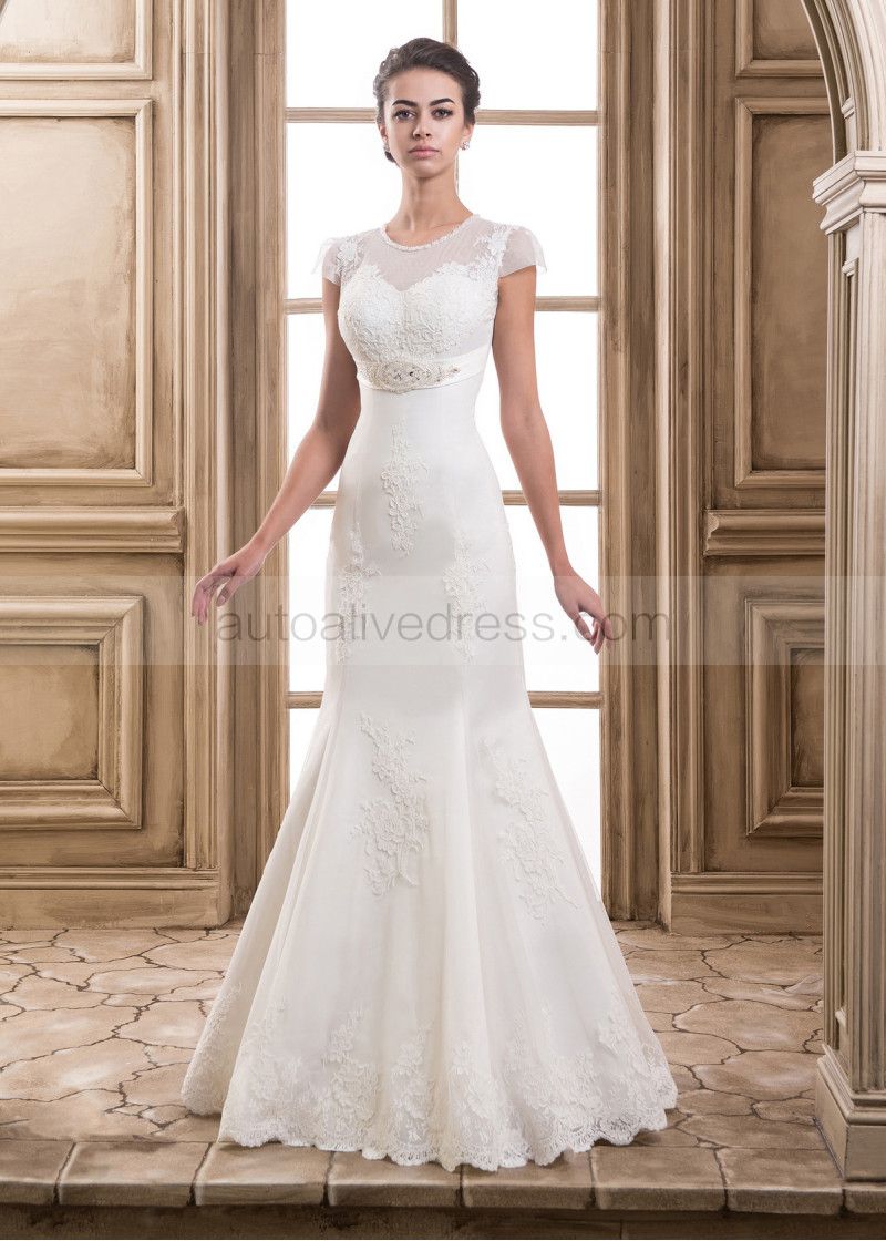 Cap Sleeves Lace Tulle Empire Waist Wedding Dress